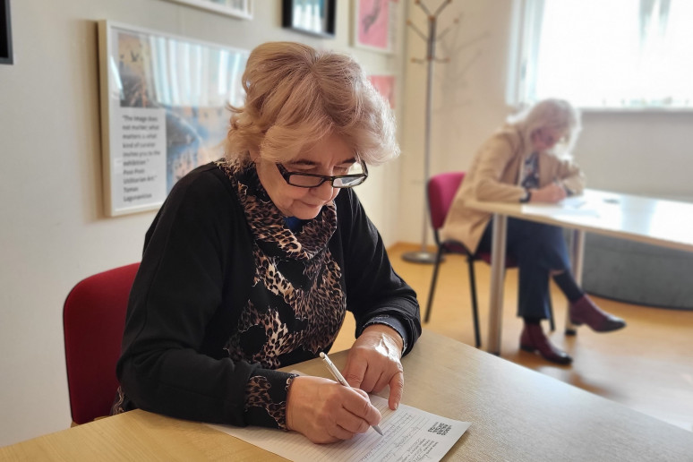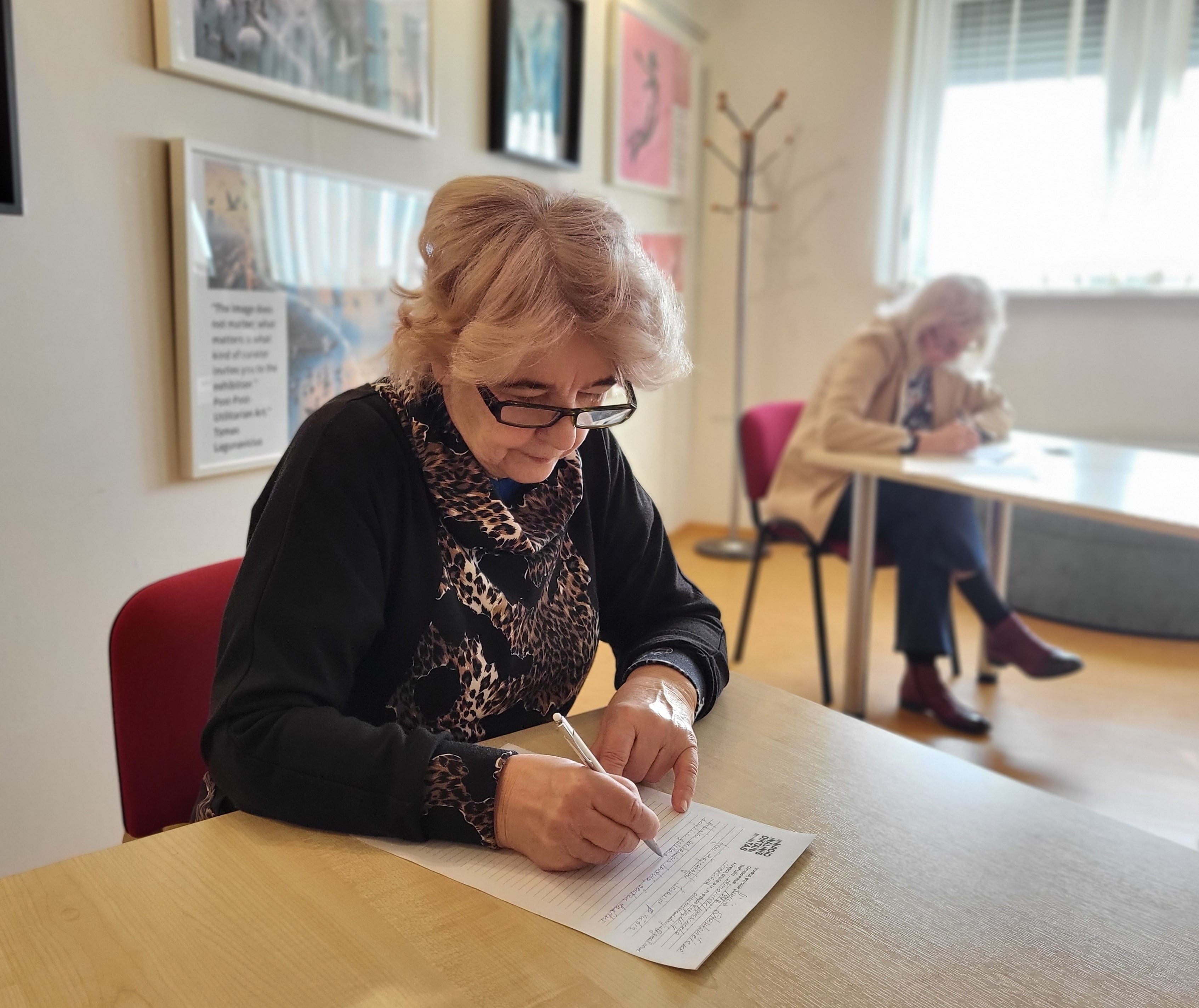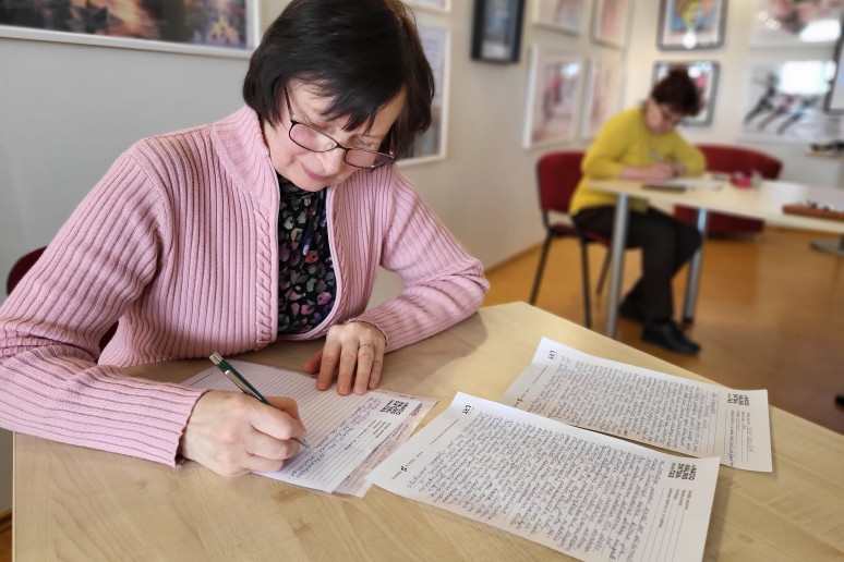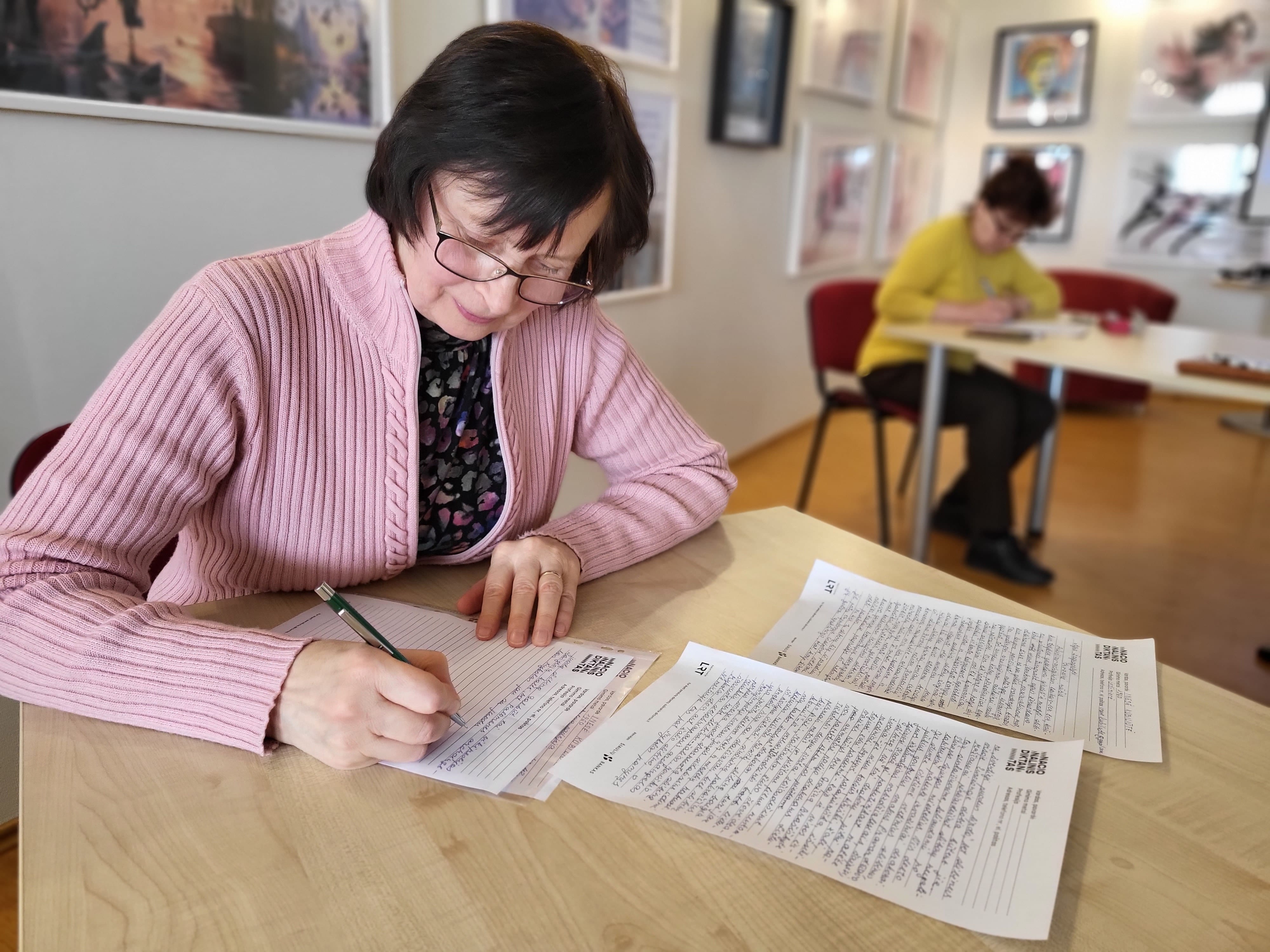 Kita bibliotekos lankytoja Asta sakė rašiusi diktantą tiek kartų, kiek jis buvo transliuojamas, ir jau 2 kartus dalyvavusi diktanto finale Vilniuje! Paklausta apie šiųmečio diktanto paliktą įspūdį, ji nedvejojo: „Nelengvas ir tikrai labai ilgas.“ Bet, aišku, visi drauge tikimės geriausių rezultatų.