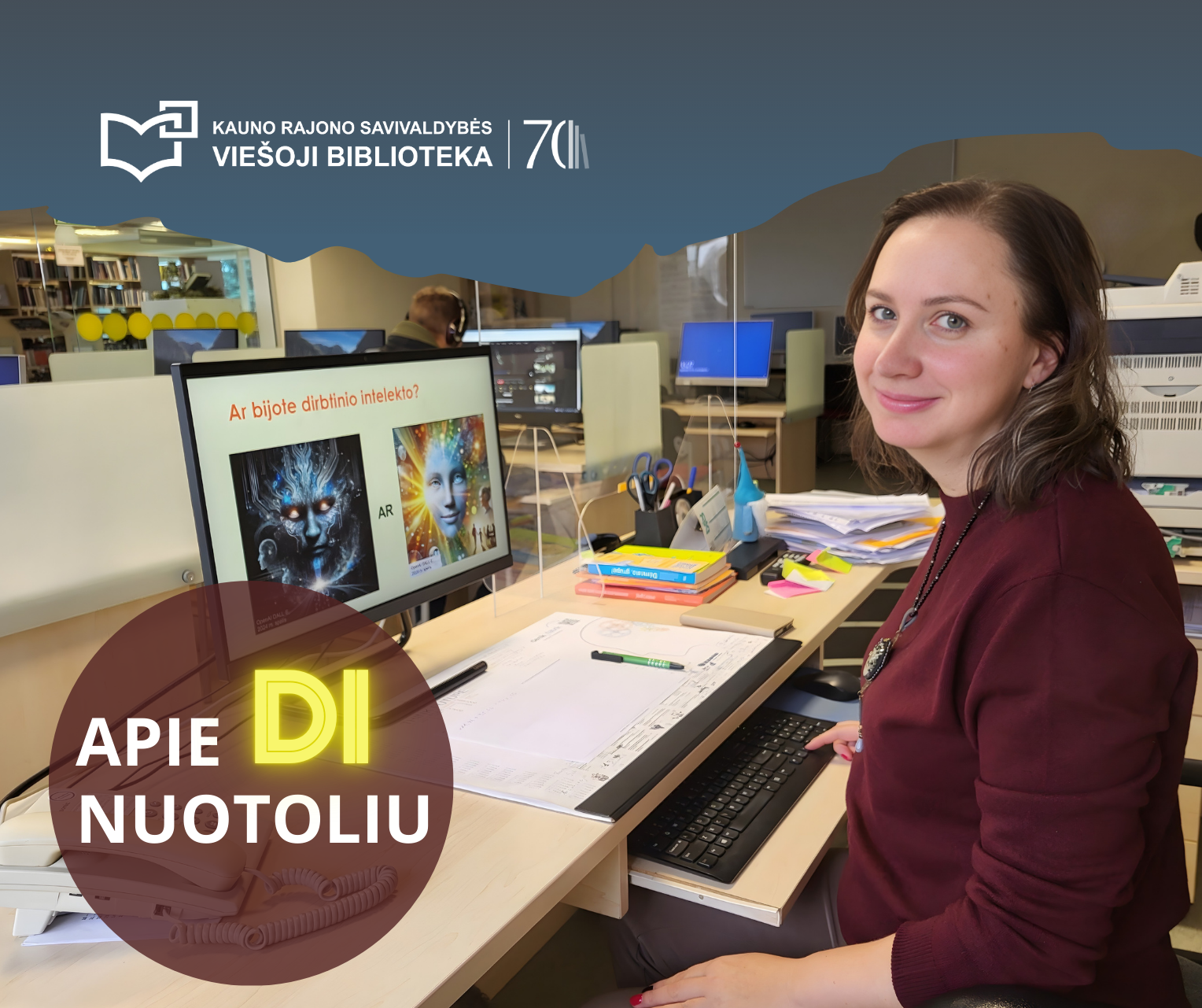 Šį mėnesį bibliotekos edukatorė Kristina Meilutė vedė mokymus apie dirbtinį intelektą, pabrėždama praktinį aspektą: