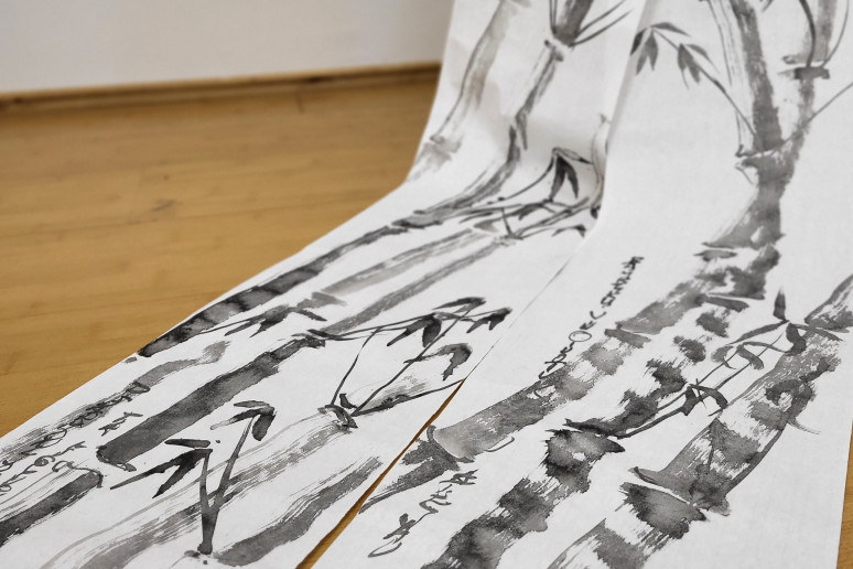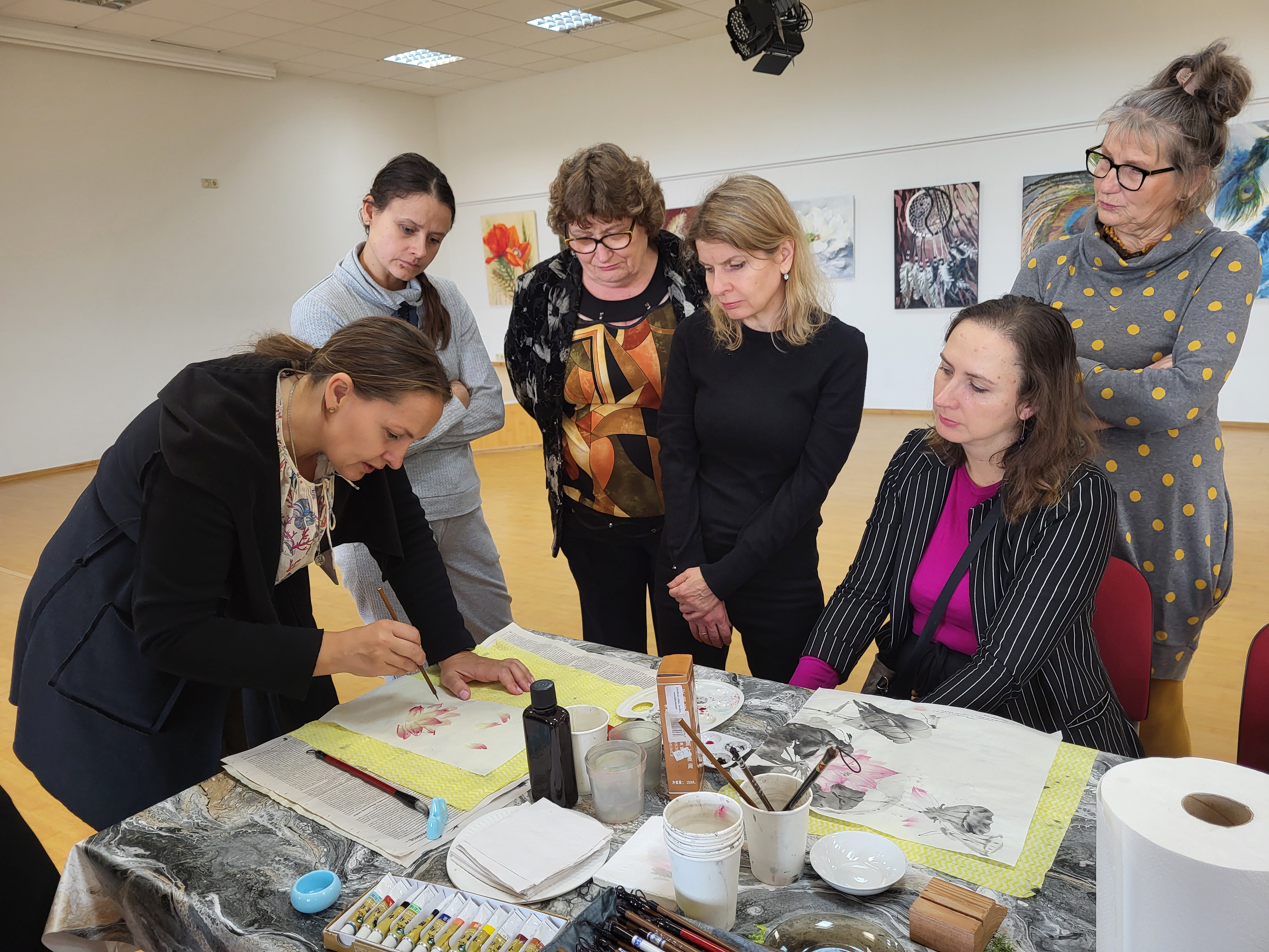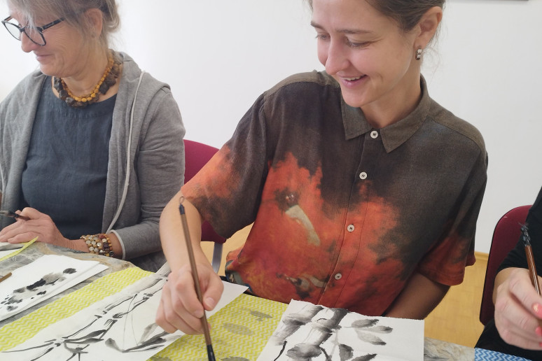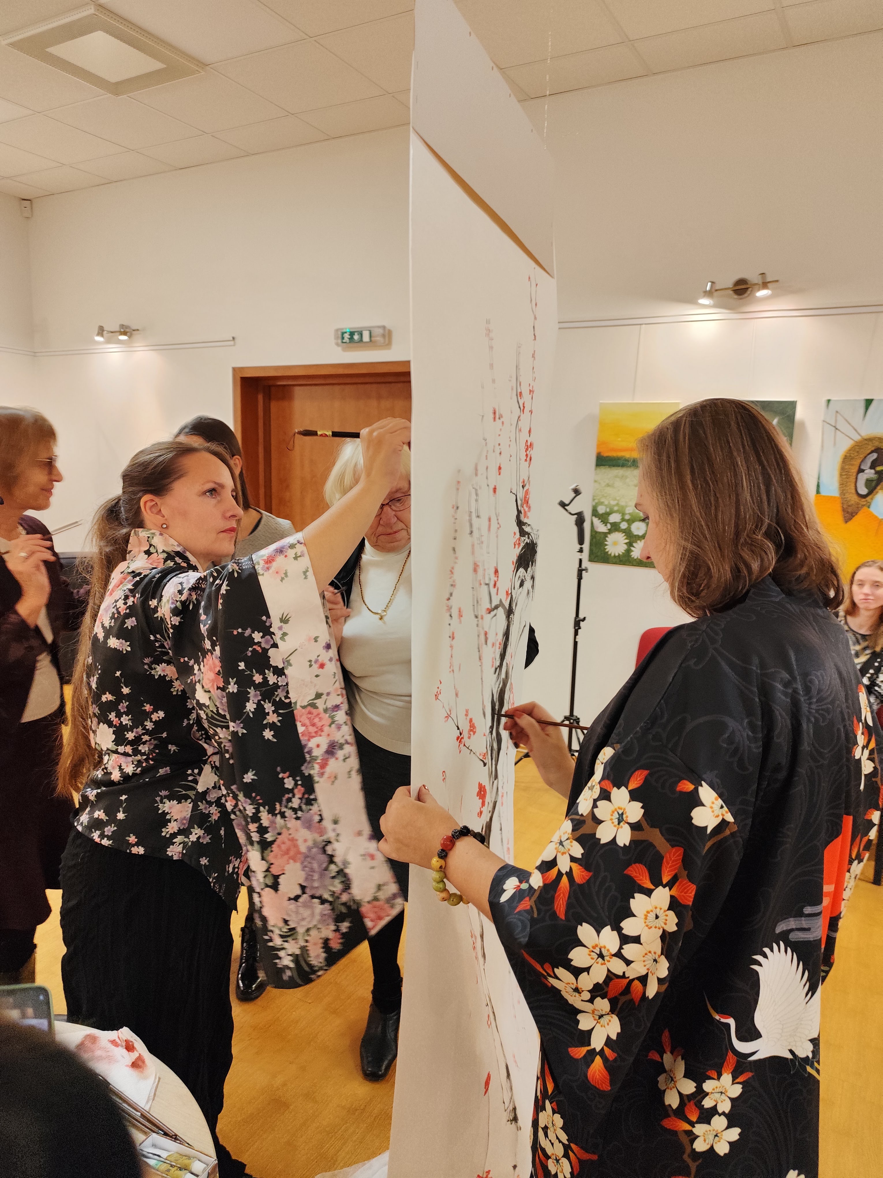Renginio metu visi projekto dalyviai bendromis jėgomis sukūrė išskirtinį tapybos kūrinį, įkūnijantį japonų estetiką. Tokį išskirtinį kūrybos procesą, primenantį performansą, pradėjo menininkė Rasa Staskonytė, tęsė bibliotekos edukatorė Kristina Meilutė, prisijungė kiti dalyviai ir projekto partnerio – Garliavos kultūros centras – suaugusiųjų mėgėjų teatro „Be pavadinimo“ (režisierė Z. Butiškytė) aktorės.