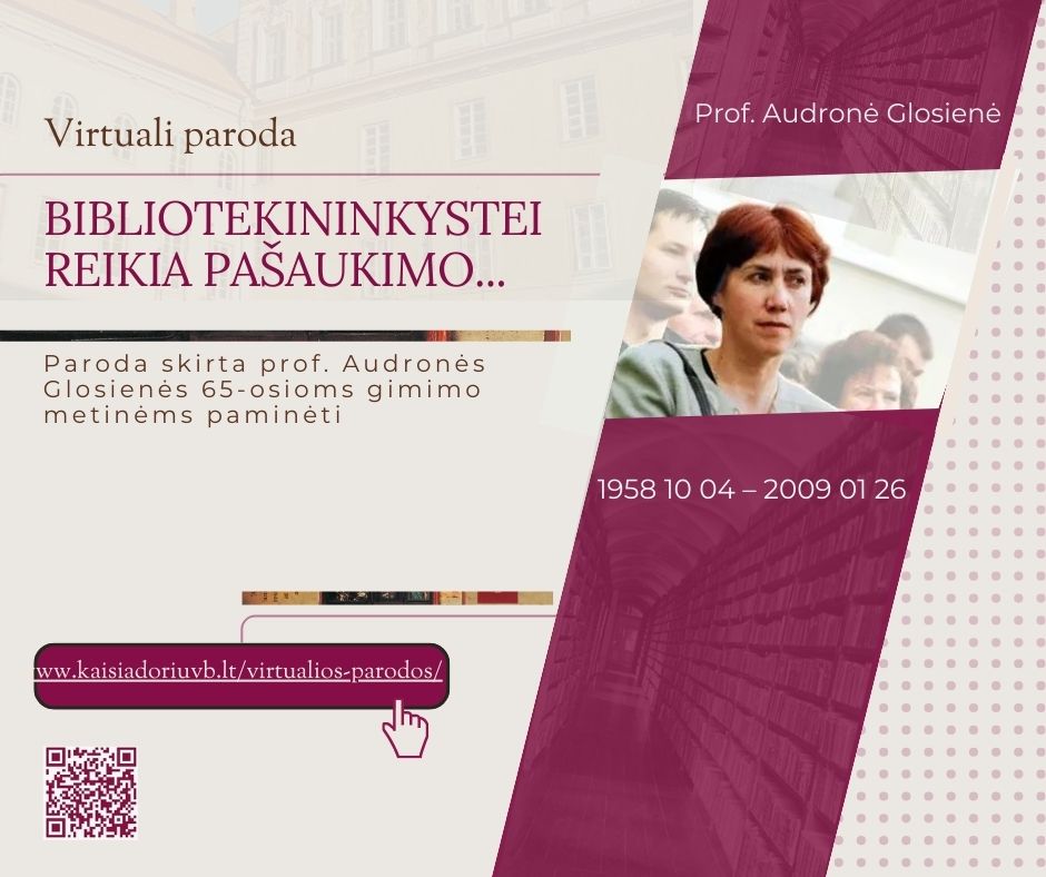 Paroda skirta prof. Audronei Glosienei, palikusiai ryškų pėdsaką Lietuvos bibliotekininkystės ir informacijos moksle, atminti.