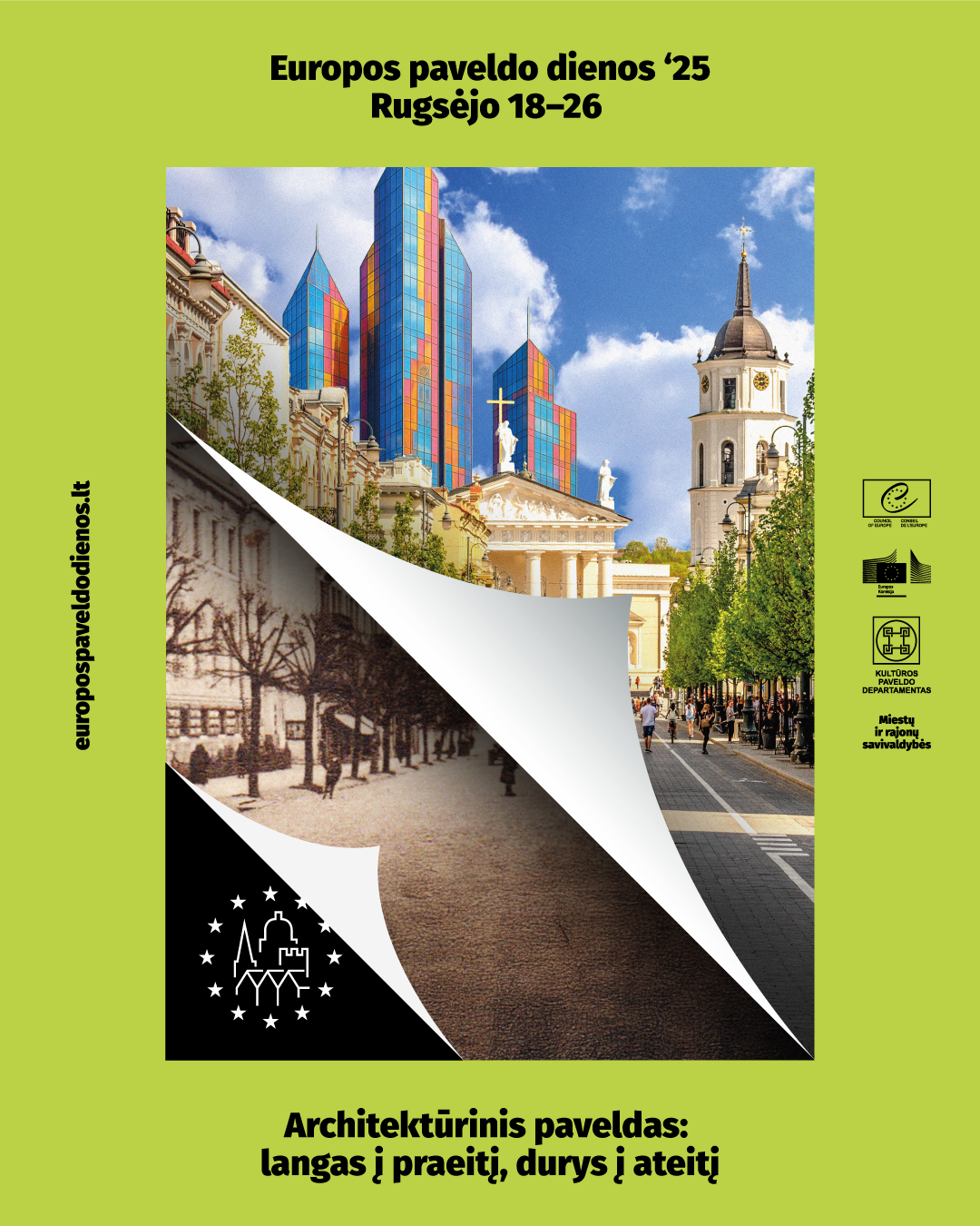 Europos paveldo dienos rugsėjo 18–26 dienomis kvies visuomenę į nemokamus renginius visoje Lietuvoje. 2025 metų tema – „Architektūrinis paveldas: langas į praeitį, durys į ateitį“ – ragina pažvelgti į architektūrinius objektus ne tik kaip į istorijos liudytojus, bet ir kaip į ateities įkvėpėjus. Tai – puiki proga išgirsti asmenines istorijas, slypinčias už storų paveldo sienų: apie žmones, kurie kūrė, gyveno, dirbo ar tiesiog buvo šių vietų dalimi. Architektūrinio paveldo tema apima platų spektrą – nuo religinių, komercinių ir pramoninių pastatų funkcijų iki statinių, turinčių atminties ar simbolinę reikšmę.