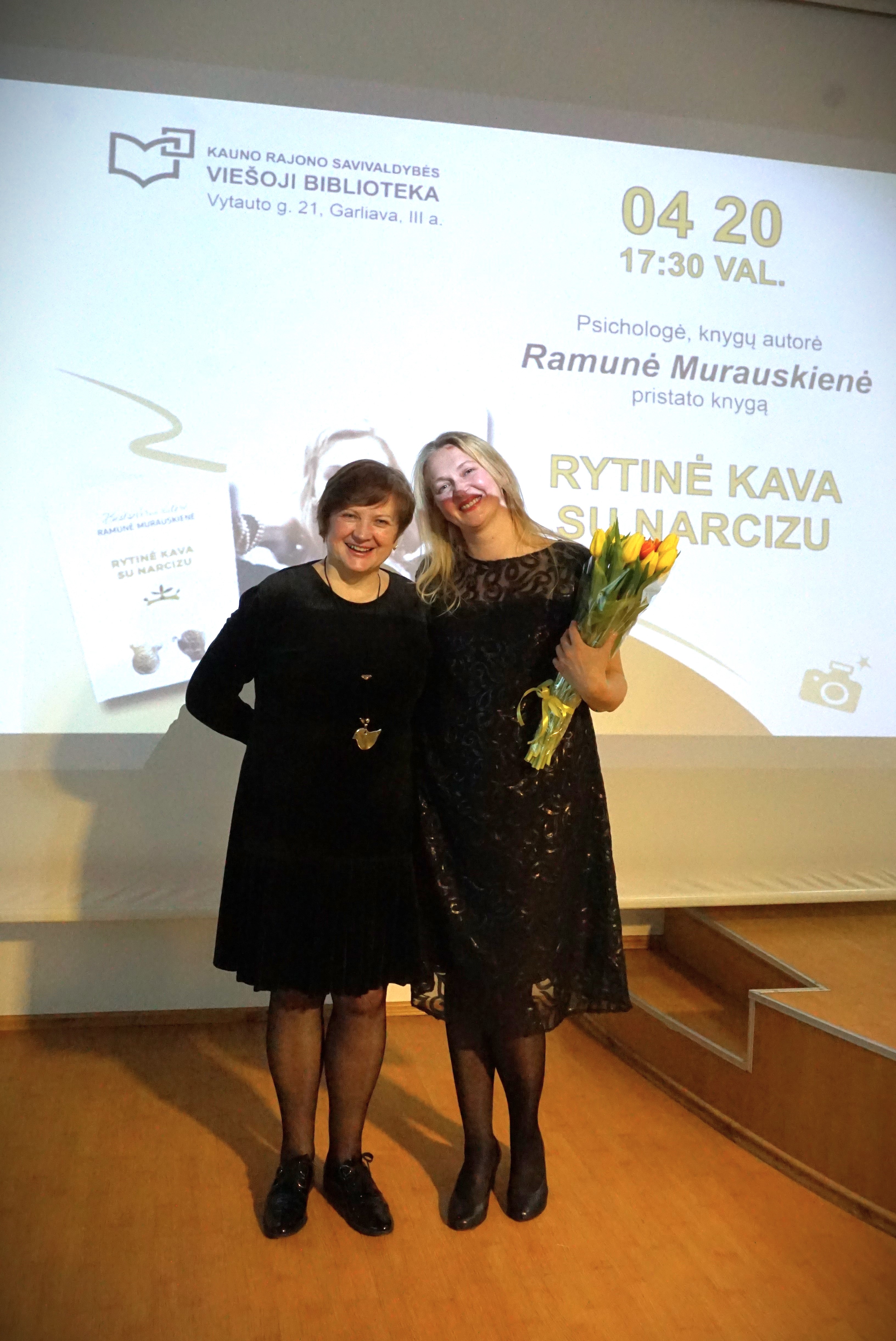 Balandžio 20-ąją rašytoja ir psichologė Ramunė Murauskienė pakvietė į ką tik išleistos jau devintosios savo knygos pristatymą bibliotekoje. „Rytinė kava su narcizu“ – sunkias ir tamsias santykių psichologijos temas gvildenanti knyga. Tad Ramunė teigė atitinkamai ir apsirengusi: „Aš šiandien visa juoda. Tai lyg gedulas. Sunki knyga, sunku kalbėti“, – dalijosi autorė. Nepaisant aptariamų temų sudėtingumo ir neigiamo emocinio krūvio, renginio nuotaika anaiptol neatrodė gedulinga. Ir tikrai ne slegiantį įspūdį išsinešė jo dalyviai. Veikiau priešingai.
