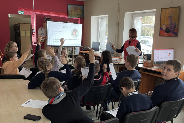 Vandžiogalos bibliotekoje vykusiuose užsiėmimuose mokiniai susipažino su pavojingų programų įvairove, atlikdami testą pasitikrino žinias.