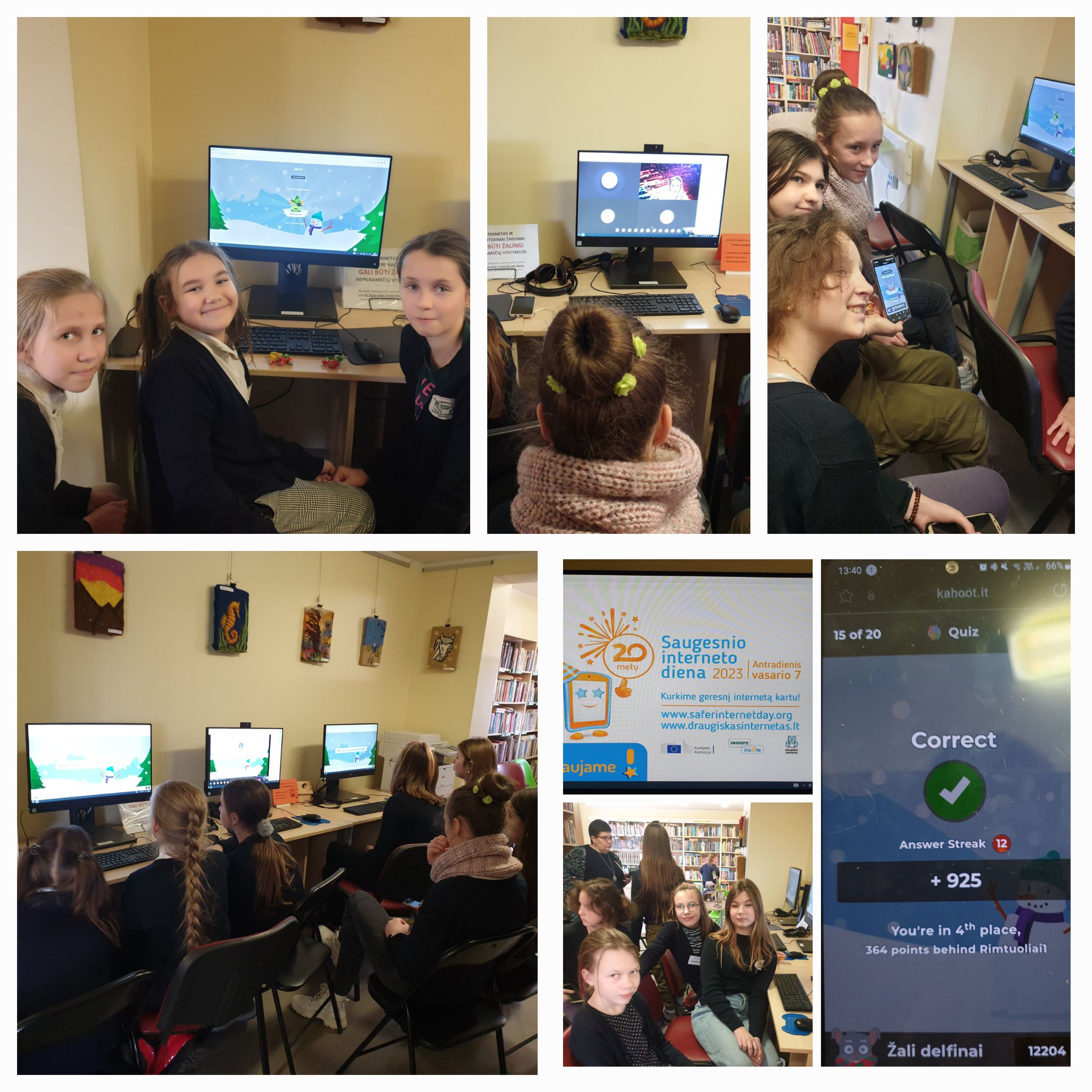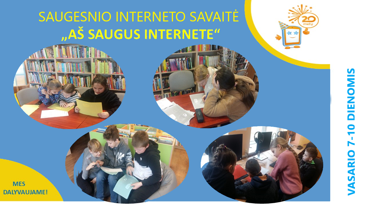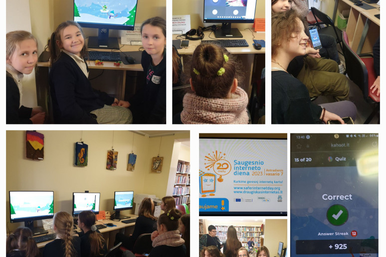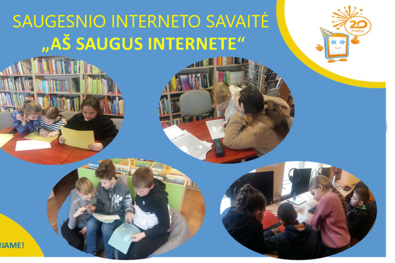 Karmėlavos bibliotekos lankytojai įveikdami tęstų klausimus pasitikrino žinias apie saugų interneto naudojimą, kaip atpažinti patyčias, kur kreiptis norint pranešti apie internete rastą įžeidžiančią informaciją, ar visi interneto draugai yra tikri draugai ir daug kitų dalykų. Kitą dieną bibliotekoje moksleiviai žaidė linksmą, bet kartu informatyvų žaidimą „Išsirink raidę – sugalvok žodį“. Kad įtvirtintume žinias, sprendėme kryžiažodžius, spalvinome paveikslėlius.