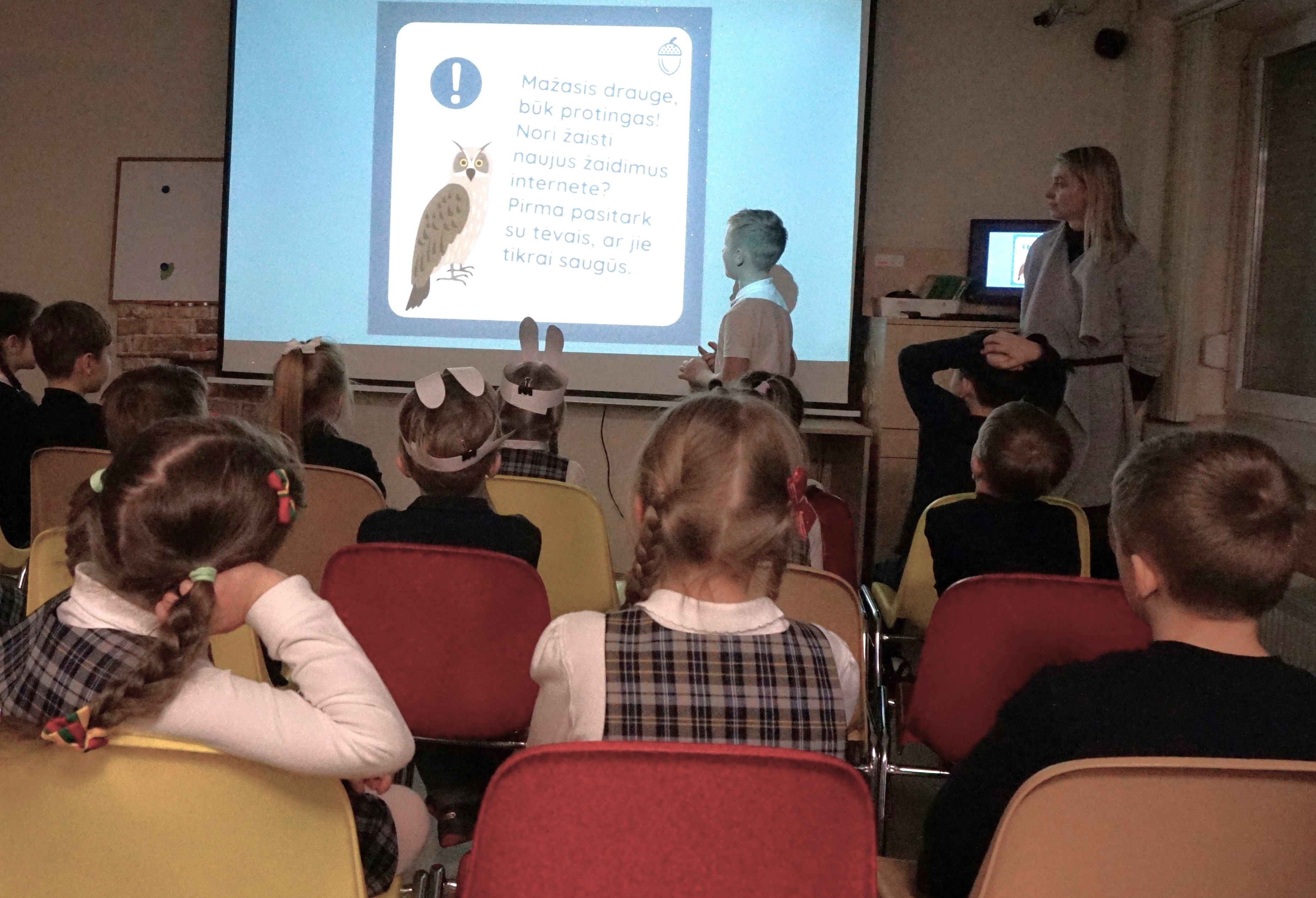 Apsilankę Batniavos bibliotekoje, Kauno rajono Kulautuvos pagrindinės mokyklos Batniavos skyriaus pradinukai susipažino su saugiu elgesiu internete. Kad įtvirtintų žinias, atliko testą „Ar esu saugus internete“. Vėliau skaitė nuotaikingą istoriją „Zoologijos sodas internete“ ir sužinojo, kam gyvūnams reikalingas internetas ir kokias grėsmes kelia neatsakingas elgesys; turėjo galimybę išbandyti kibernetinio saugumo žaidimą „Spoofy“.