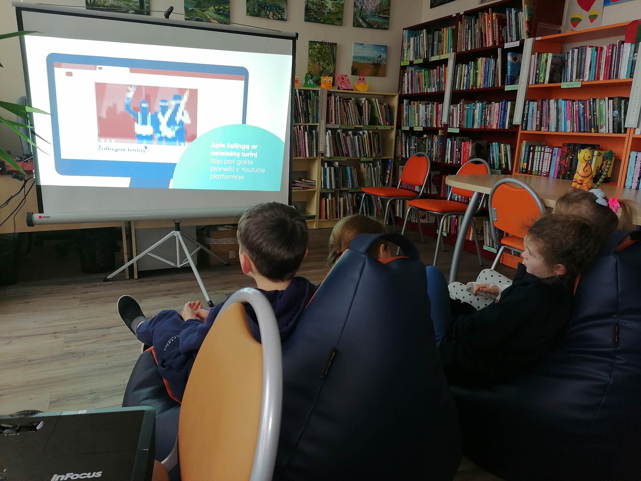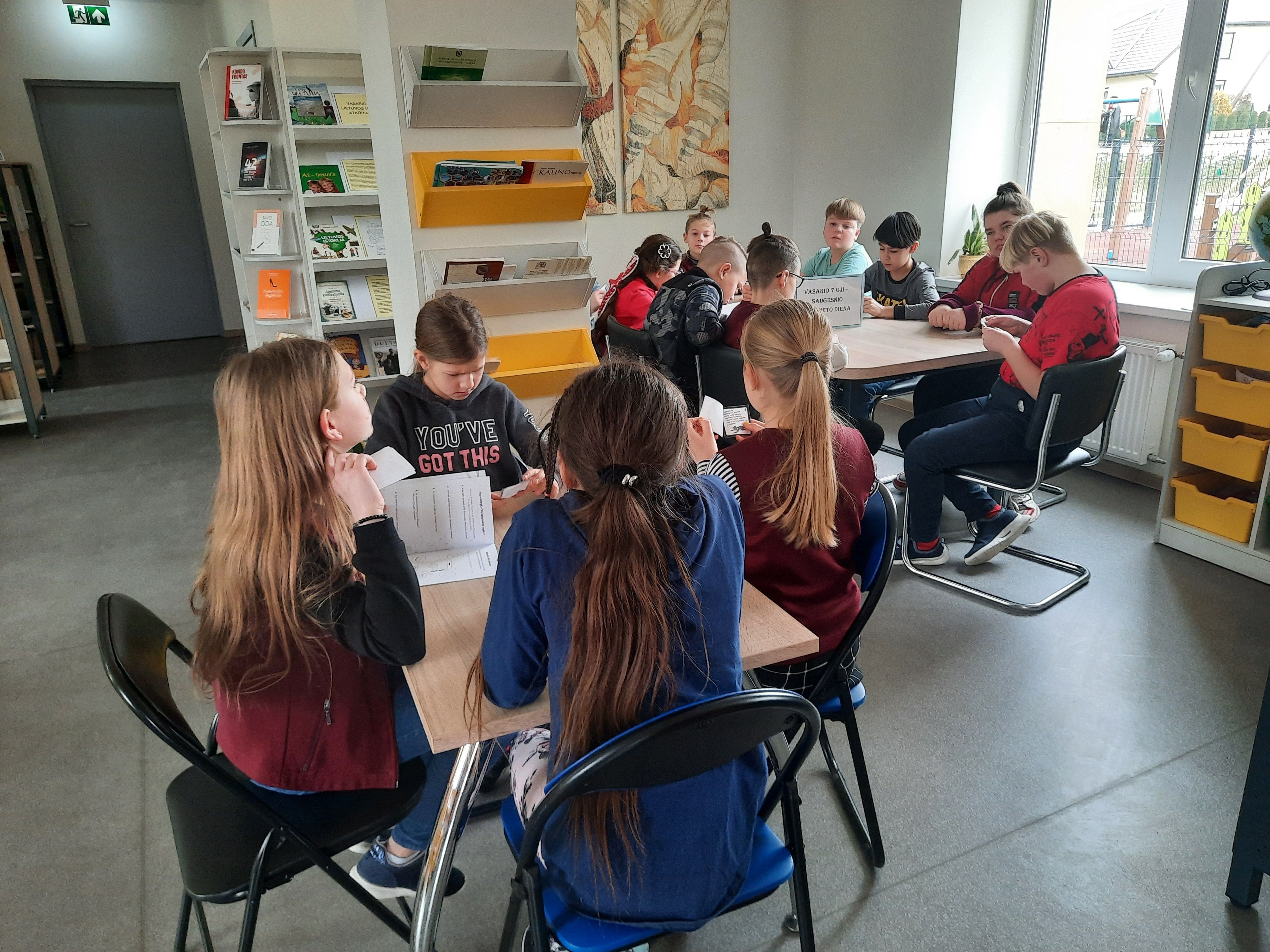 Saulėtekio bibliotekoje vyko edukacija „Aš – saugus internete“, sprendėme užduotis iš „Draugiško interneto“ užduočių knygelės.