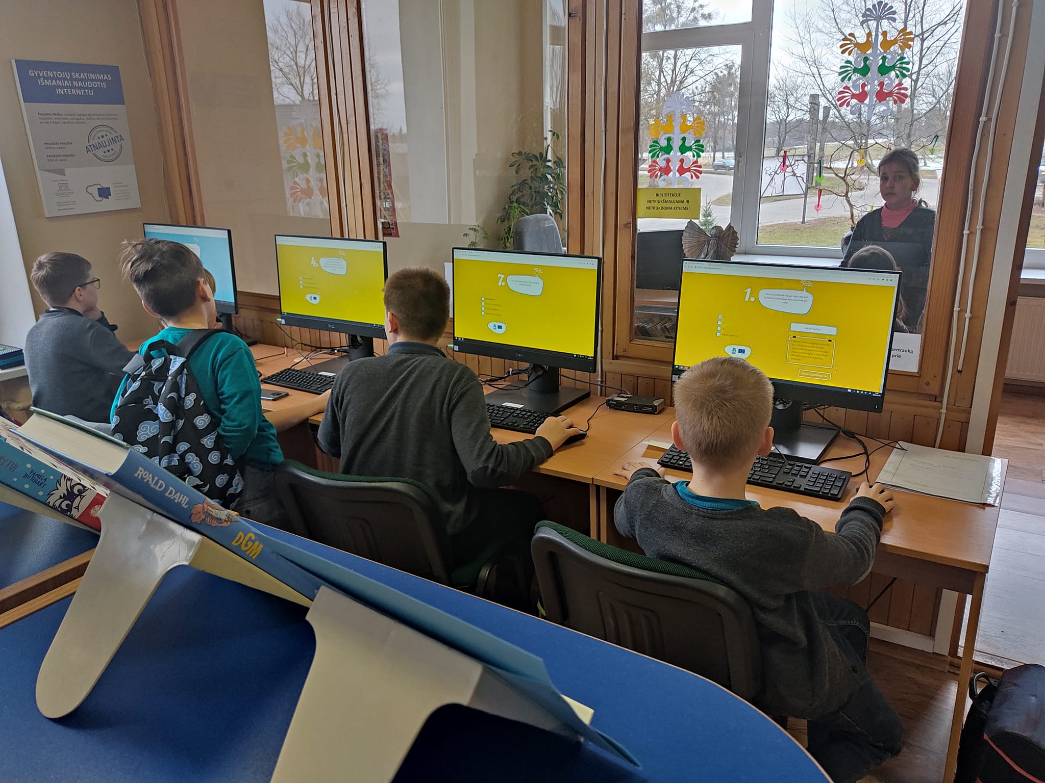 Kulautuvos pagrindinės mokyklos Batniavos skyriaus ketvirtokai lankėsi bibliotekoje ir gilino žinias apie grėsmes bei saugumą internete: žiūrėjo saugaus interneto pamoką su Gustavu, skaitė Liuksemburgo saugesnio interneto centro parengtą knygelę „Bitutė internete. Kas nori apgauti Bitutę“, sprendė užduotis užduočių knygelėje „Aš – saugus internete“.