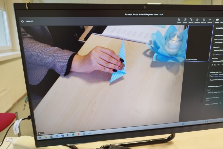 Edukatorė su mokiniais žiūrėjo filmuotą medžiagą, animacinį filmą apie sausio 13-osios įvykius. Žaidė žaidimą „Tiesa ar melas“. Kūrybinėse dirbtuvėse gamino neužmirštuolės formos žibintą.