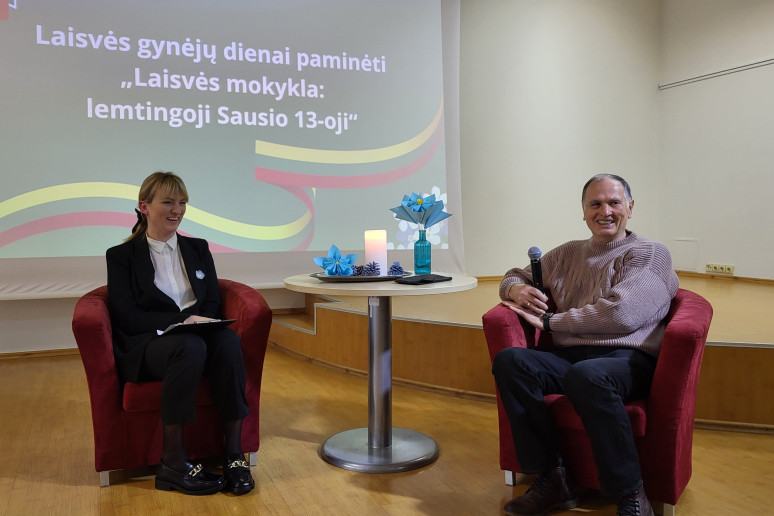 Vyresniųjų klasių moksleiviams skirtoje Sausio 13-osios įvykių minėjimo programos dalyje buvo pristatyta bibliotekos parengta Sausio 13-osios aukų portretų paroda; taip pat knygų apie šį Lietuvos istorijos tarpsnį paroda. Žiūrėjome trumpametražį filmą apie tragiškus įvykius. Atsiminimais dalijosi ir susirinkusius moksleivius bei mokytojus į diskusiją kvietė 1991-aisiais inžinieriumi Juragių radijo ir televizijos storyje dirbęs Antanas Zumaras. Pernai jis apdovanotas Kauno rajono Trečio lygio garbės ženklu už aktyvią veiklą ginant Juragių radijo ir televizijos stotį 1991 m. sausį.