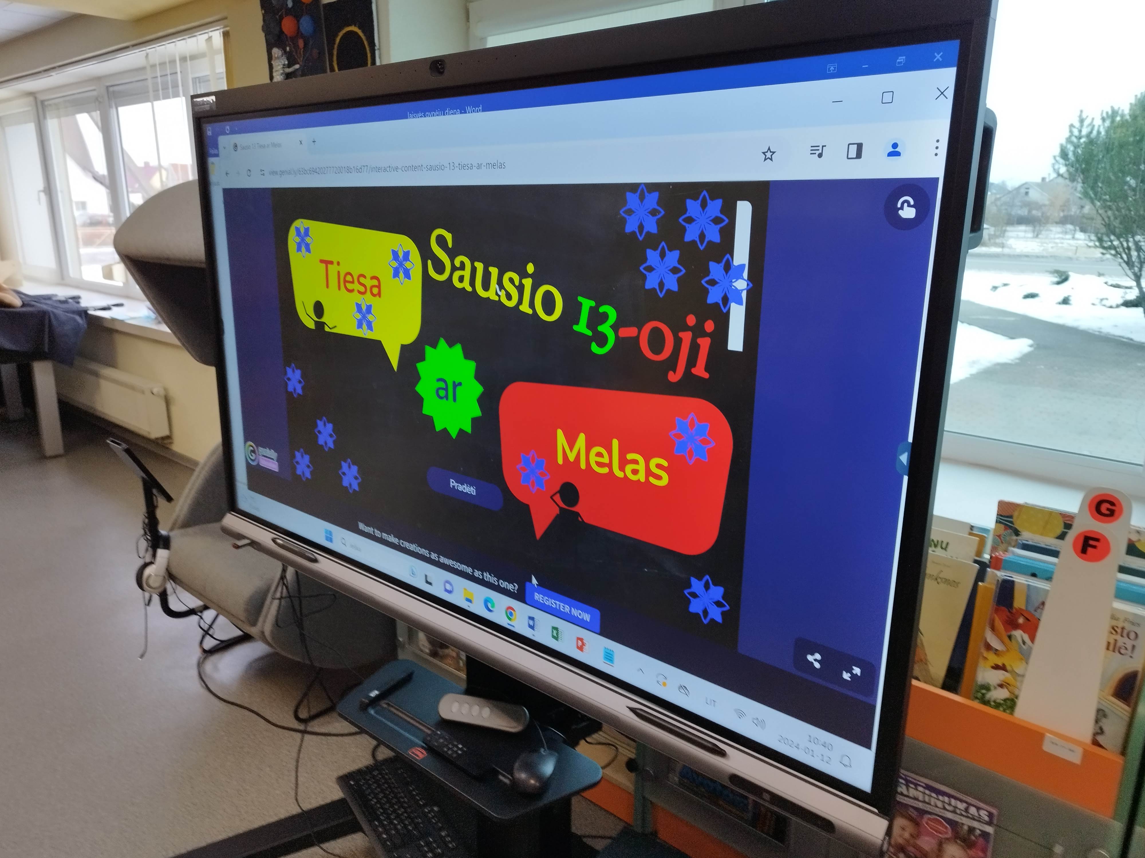 Vaikų centre edukatorė Kristina Meilutė vedė edukaciją dviem klasėms paeiliui: Kauno rajono Zapyškio pagrindinės mokyklos antrokams ir Kauno rajono Garliavos Adomo Mitkaus pagrindinės mokyklos antrokams. Moksleiviams suprantamais žodžiais edukatorė pasakojo apie tuomečius įvykius, paskui edukacijos dalyviai peržiūrėjo moksleivio Dominyko Daunio sukurtą trumpametražį filmuką apie Sausio 13-osios įvykius (https://www.youtube.com/watch?v=QSfhdIOvF0U ) ir atsakė į specialiai parengtos viktorinos klausimus – kas tiesa apie sausio 13-ąją, kas melas. O edukaciją vainikavo nuostabiai elegantiškų neužmirštuolės formos žibintų dirbtuvės.