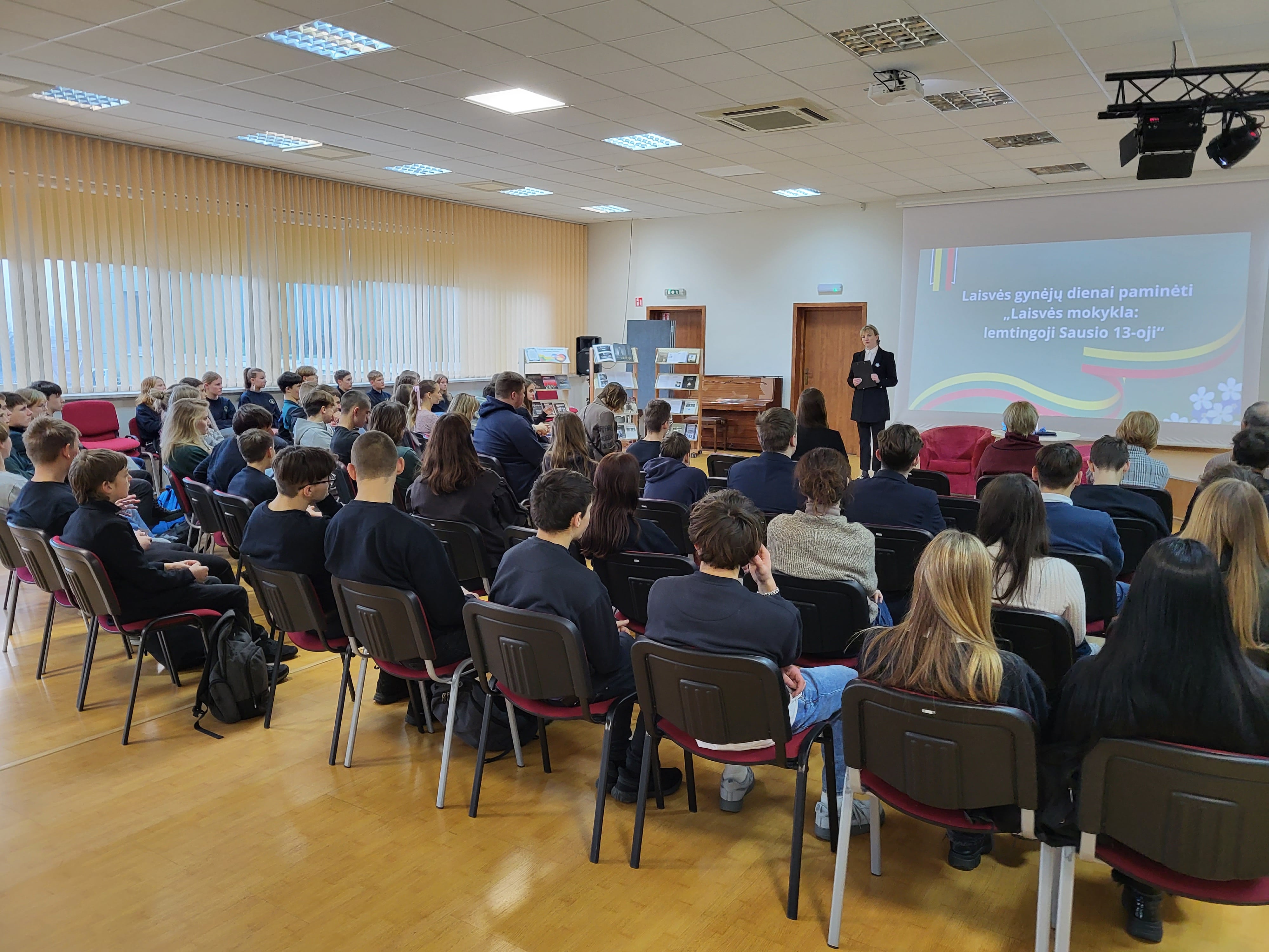Bibliotekoje susibūrė istorijos mokytojų lydimi moksleiviai iš Kauno r. Garliavos Adomo Mitkaus pagrindinės mokyklos, Kauno r. Garliavos Jonučių progimnazijos, Garliavos Juozo Lukšos gimnazijos. Renginio pabaigoje žodį tarusi Kauno rajono savivaldybės viešosios bibliotekos direktorė Irena Viktorija Stančiauskienė pasidalijo prisiminimais, ką išgyveno su šeima tą lemtingąją Sausio 13-ąją. Jos žodžiai vaizdžiai piešė psichologinės įtampos bei nežinios atmosferos kupiną tos nakties paveikslą ir kartu kvietė susimąstyti: „Lietuvos istorija yra labai sudėtinga, ypač aiškiai tą pamatai šiek tiek atidžiau įsigilinęs į jos vingius. O ar įsivaizduojate, kas būtų, jeigu dabar šios aplinkybės pasikartotų? Pabandykite sau atsakyti į tokį klausimą.“