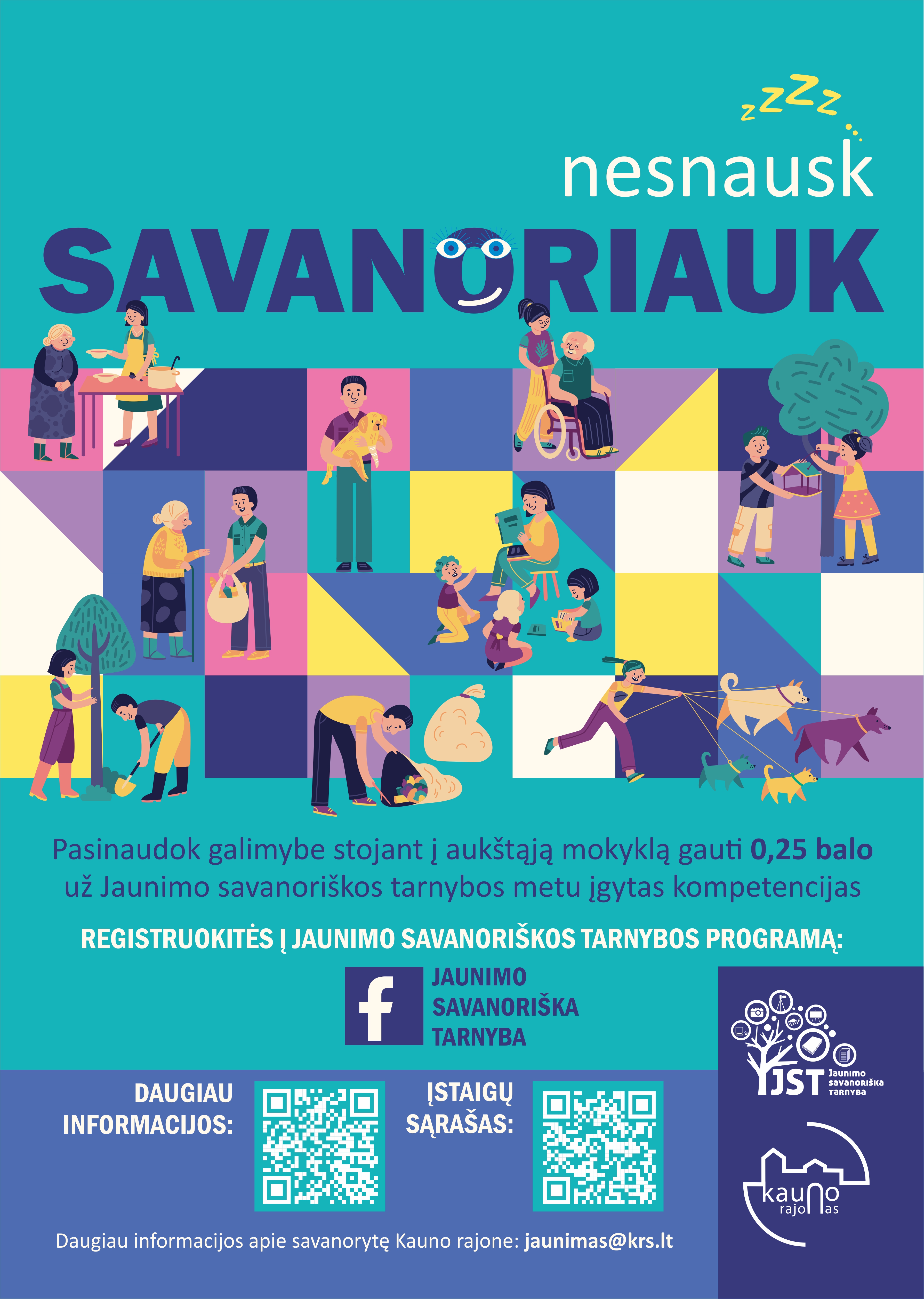 Jeigu tave žavi savanoriška veikla, nesnausk ir registruokis į Jaunimo savanorišką tarnybą (JST).