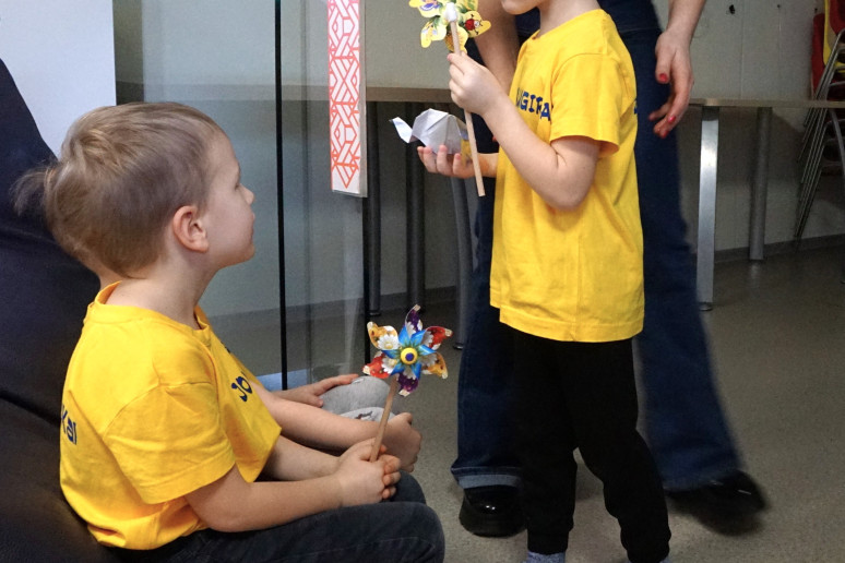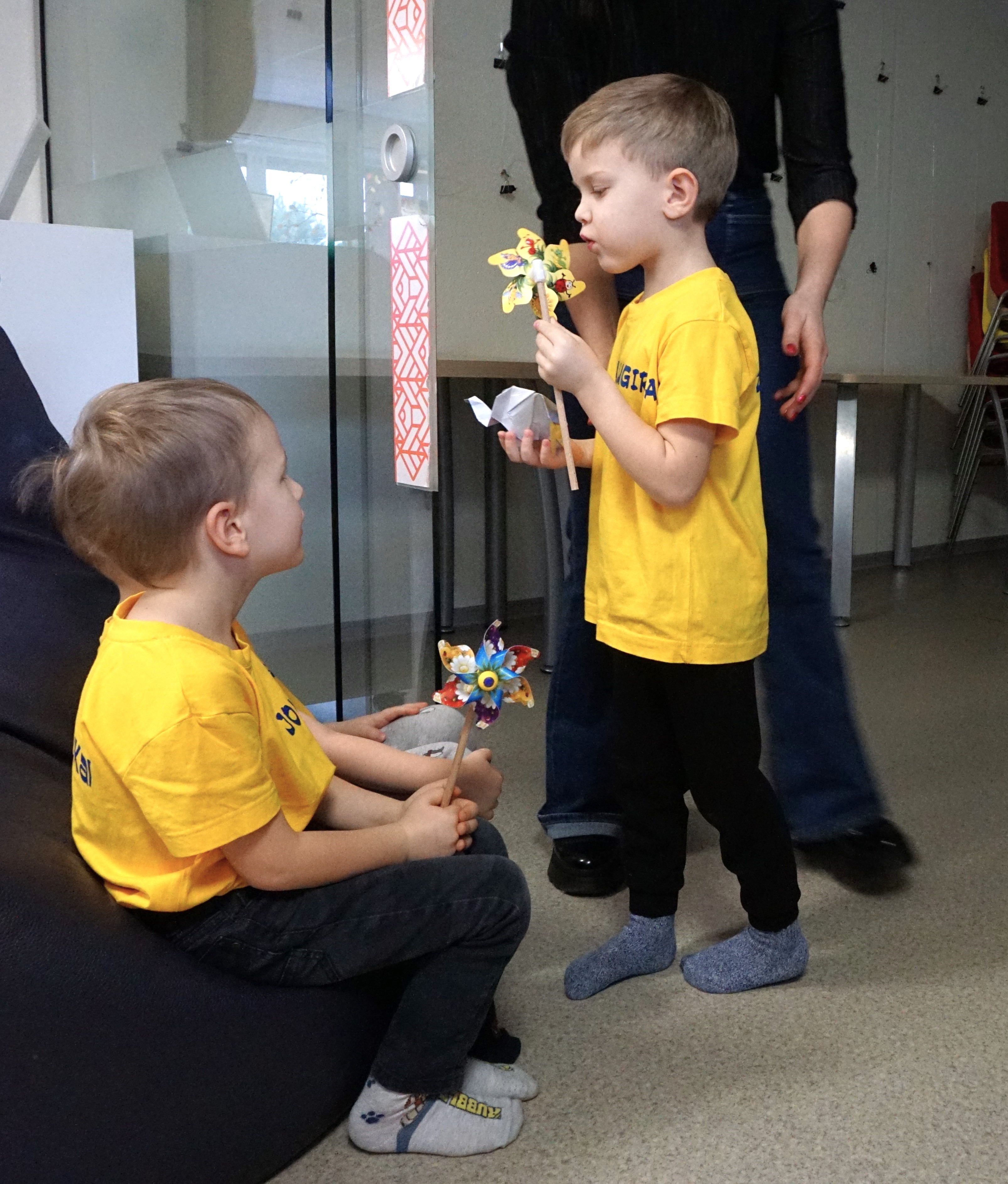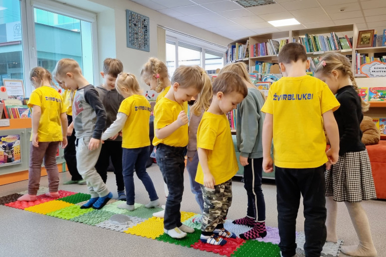 Skaitymams pasibaigus, mažieji bibliotekos svečiai visai neskubėjo išeiti: smalsiai apžiūrėjo Vaikų centre esančias knygeles ir, lyg pratęsdami sensorinio pasaulio pažinimo rytmetį, pasivaikščiojo pojūčių taku.