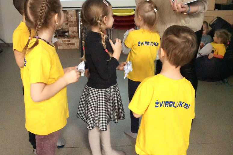 Mažieji sensorinių skaitymų dalyviai mokėsi ritmingai žingsniuoti, skaičiuoti nuo 10 iki vieno ir atgal. Vaikučiai klausėsi ne tik klausėsi nuotaikingos istorijos, bet ir patys vaidino.