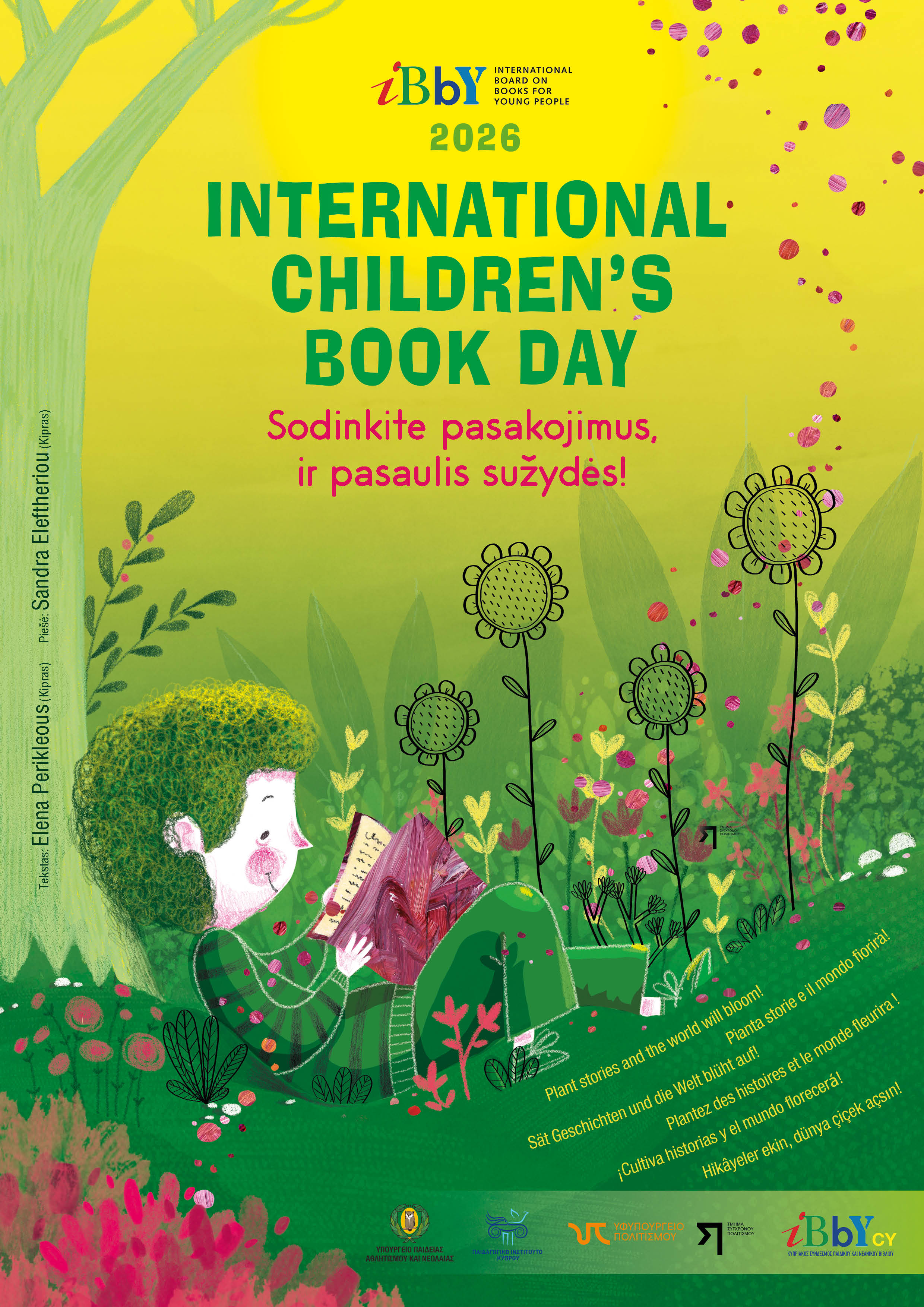 Tarptautinės vaikų ir jaunimo asociacijos Lietuvos skyrius (IBBY Lietuvos skyrius) sveikina Jus artėjančios Tarptautinės vaikų knygos dienos proga. Šias metais Tarptautinės vaikų knygos dienos rėmėjas - IBBY Kipro skyrius, tad plakato autorė – Kipro menininkė Sandra Eleftheriou.