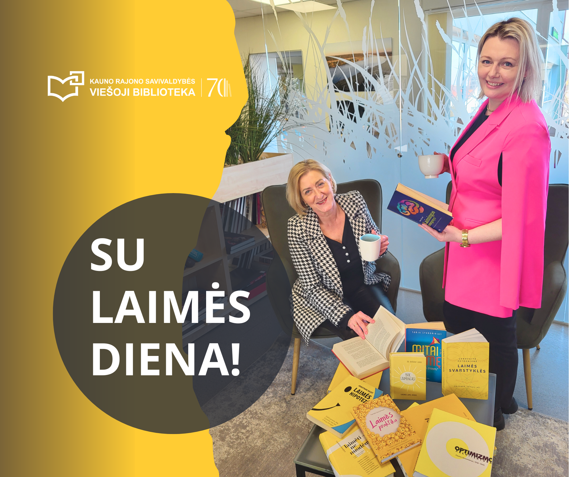 Vyr. bibliotekininkė Virginija, renginių organizatorė ir koordinatorė Živilė ir kiti Kauno rajono savivaldybės viešosios bibliotekos darbuotojai kviečia šiandien užsukti į biblioteką ir paimti knygą – galbūt ji taps Jūsų šios dienos ar savaitės laimės šaltiniu!