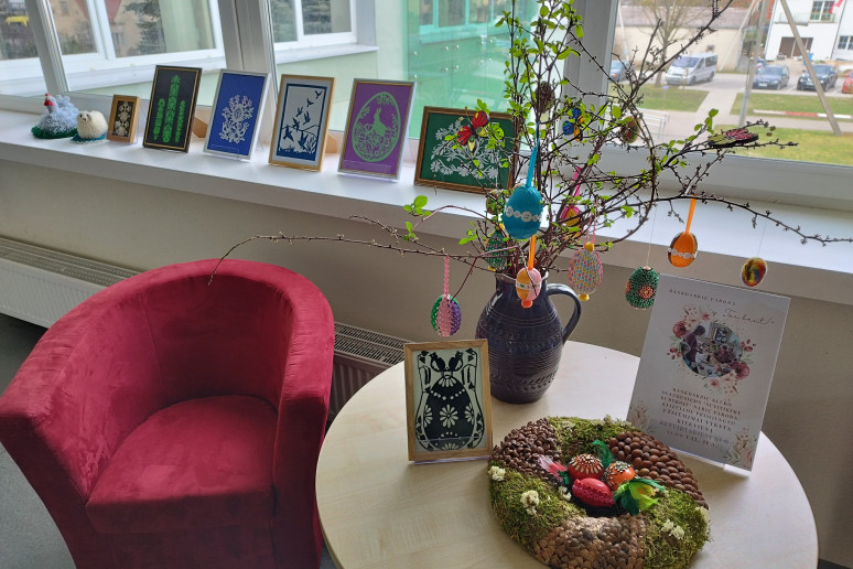 Paskubėkite išsirinkti šventinio savaitgalio skaitinių: penktadienį ir šeštadienį dirbame įprastu laiku, o pirmadienį velykaujame. Taigi, pačių geriausių Jums knygų ir prasmingų, šviesių, išmintingų šv. Velykų! Nuotraukose matote šventiškai papuoštas bibliotekos erdves ir bibliotekoje veikiančio rankdarbių klubo „Susitikime kūryboje“ darbų parodą.