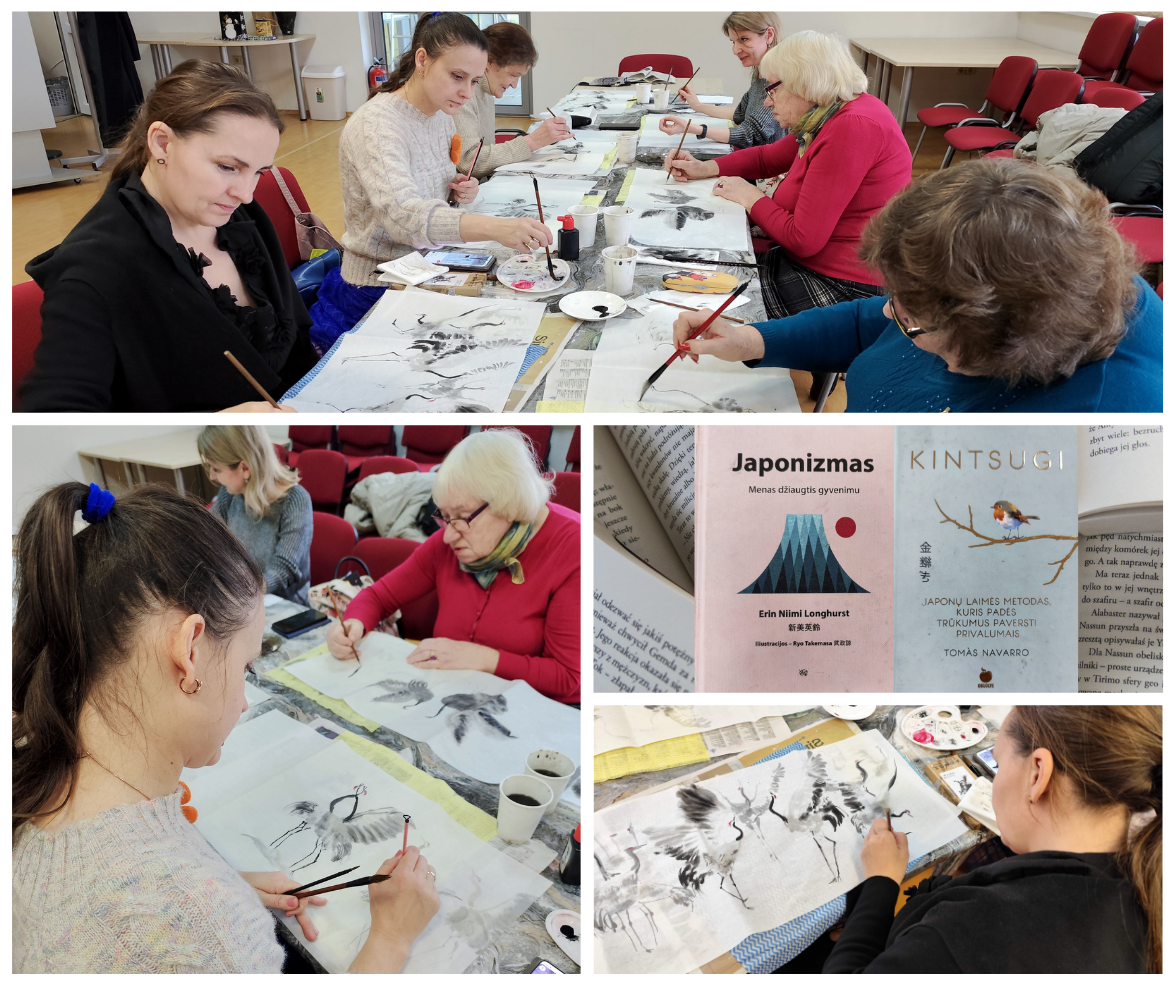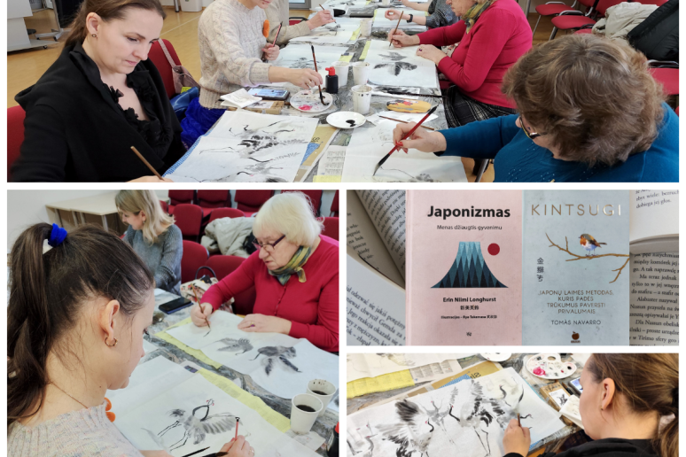 • Japonų tradicinės tapybos ir kaligrafijos patyriminė pamoka bibliotekoje: Naujųjų metų sėkmės simbolio – gervių tapyba.