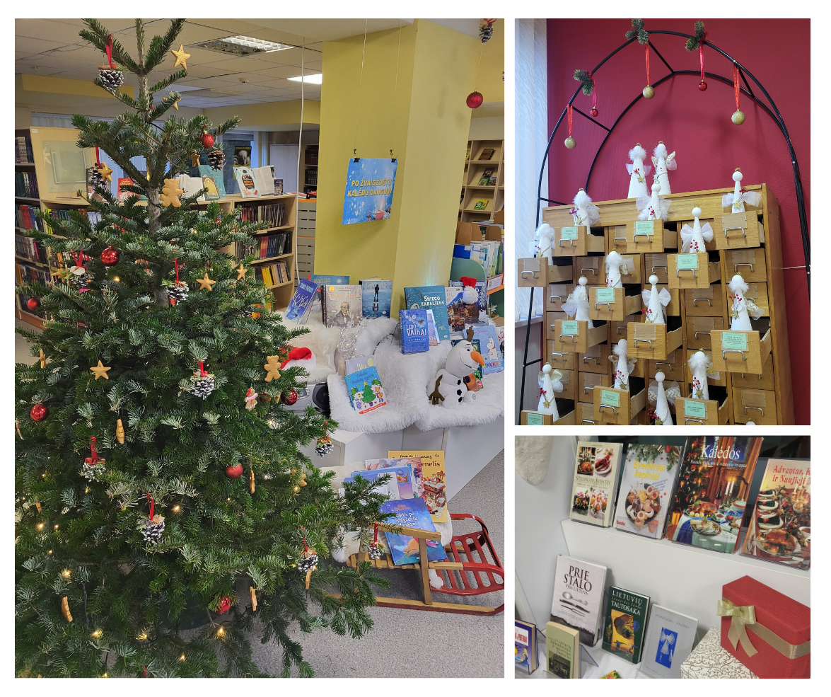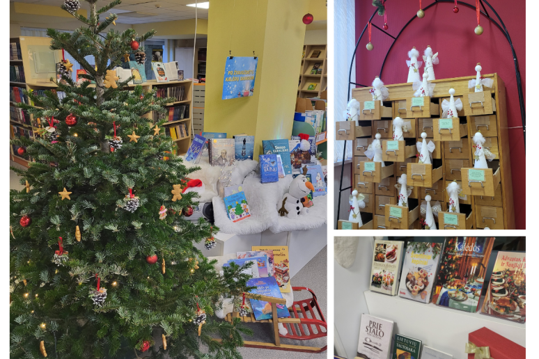 Kauno rajono savivaldybės viešoji biblioteka, pasipuošusi šventine nuotaika, džiaugiasi stebuklingu šv. Kalėdų pasauliu! Tarp knygų lentynų tyliai šnabžda Kalėdų istorijos, o languose žaismingai mirguliuoja žvaigždelės. Kiekvieną dieną čia gimsta nauji stebuklai: vieni kuria kalėdinius atvirukus, kiti savo rankomis gamina dekoracijas, treti dalyvauja jaukiose edukacijose. Mažieji skaitytojai rašo laiškus Kalėdų Seneliui, o vyresnieji mėgaujasi ramiais pokalbiais apie knygas.