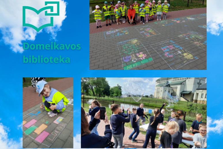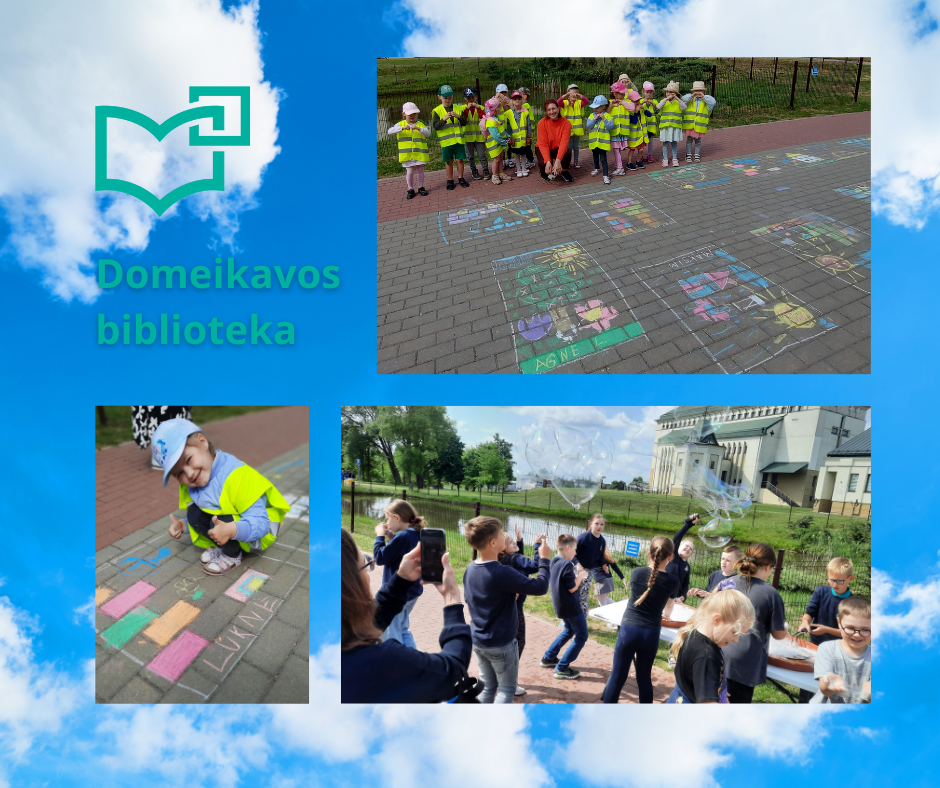 Paminėti Tarptautinę vaikų gynimo dieną ir linksmai praleisti laiką pakvietėme Domeikavos lopšelio-darželio „Žiogeliai“ grupės ugdytinius bei Domeikavos gimnazijos antrokus. Klausydamiesi muzikos, ant asfalto piešėme piešinį „Sveika, vasara“. Mažųjų „žiogelių“ piešinukai liejosi tikromis vasaros spalvomis, o kai kurių – moderniomis formomis. Vėliau džiaugėmės spalvotais muilo burbulais.
