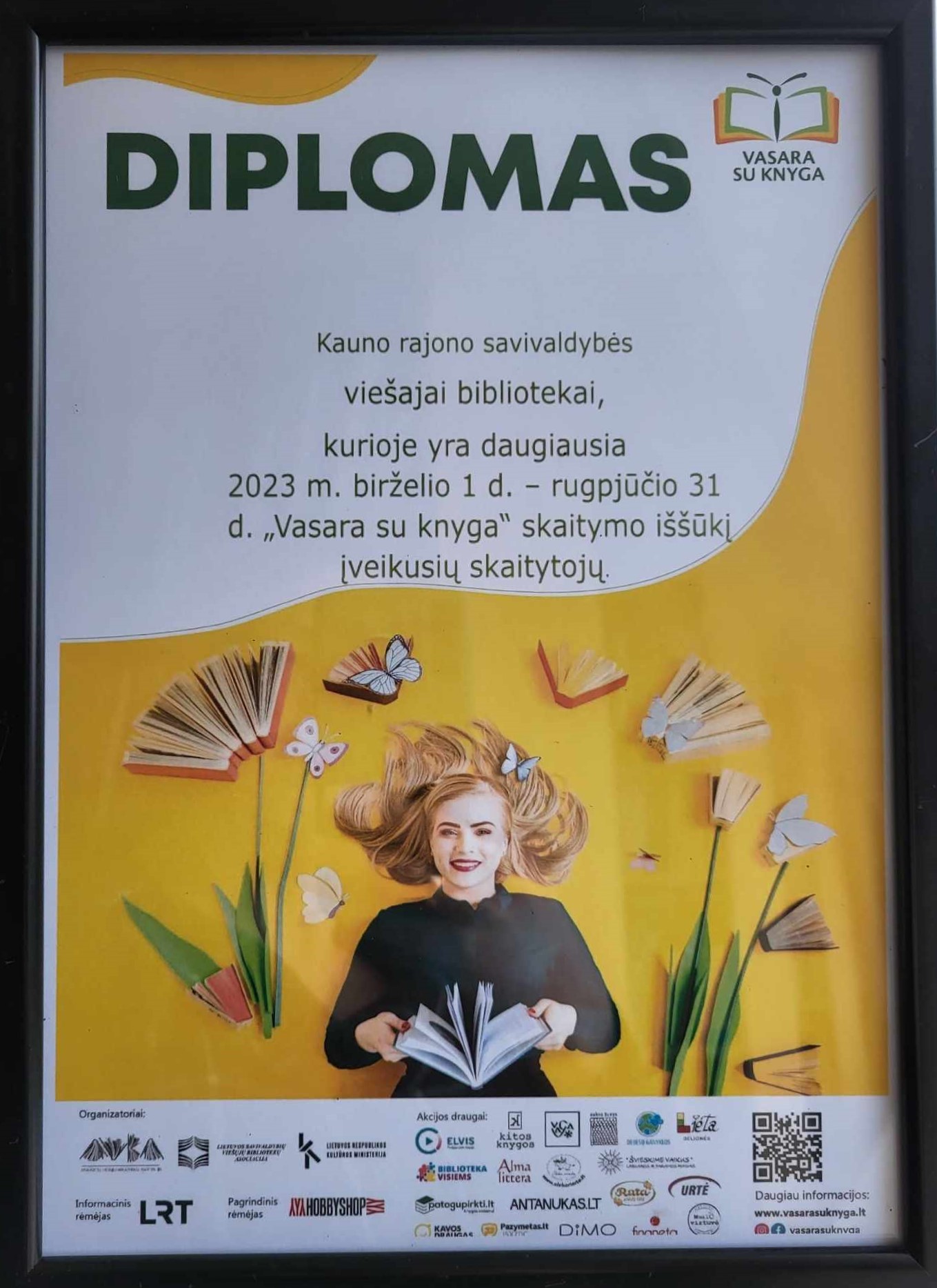 Kauno rajono savivaldybės viešoji biblioteka dalijasi gauto apdovanojimo džiaugsmu su visų trisdešimties padalinių darbuotojais ir visais visais bibliotekos lankytojais. Dėkui Jums, kad mylite knygas. Skaitydami toliau, nekantriai laukiame naujos „Vasaros su knyga“.