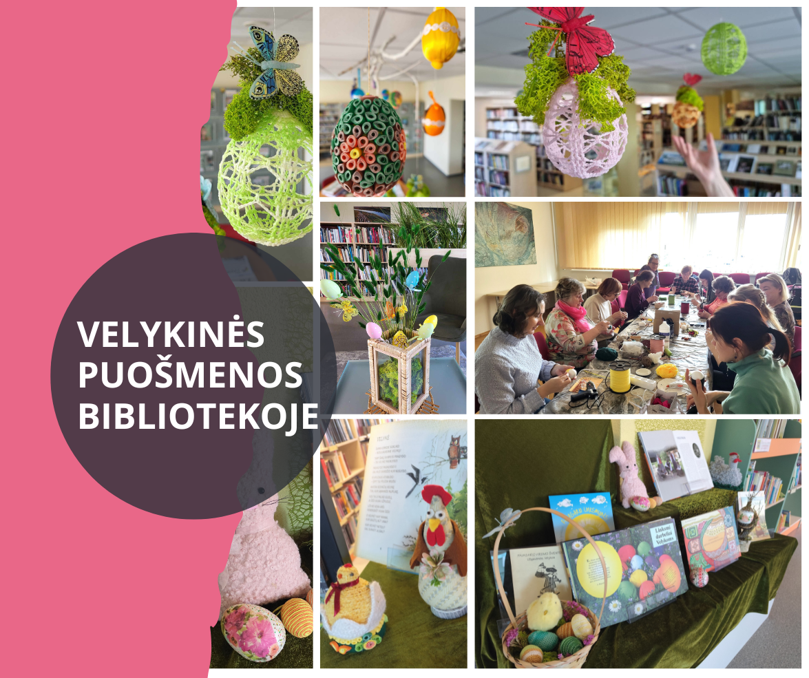 Kviečiame užsukti į biblioteką – pasigėrėti mūsų rankdarbių klubo „Susitikime kūryboje“ narių ir bibliotekos dailininkės Dainoros sukurtomis velykinėmis dekoracijomis! Nors Šv. Velykos jau poryt, dar tikrai spėsite pasisemti šventinės nuotaikos bei idėjų savo namų puošybai, kartu ir pasidžiaugsite bendruomenės narių kūrybiškumu. O svarbiausia – išsirinksite naujų skaitinių šventėms.