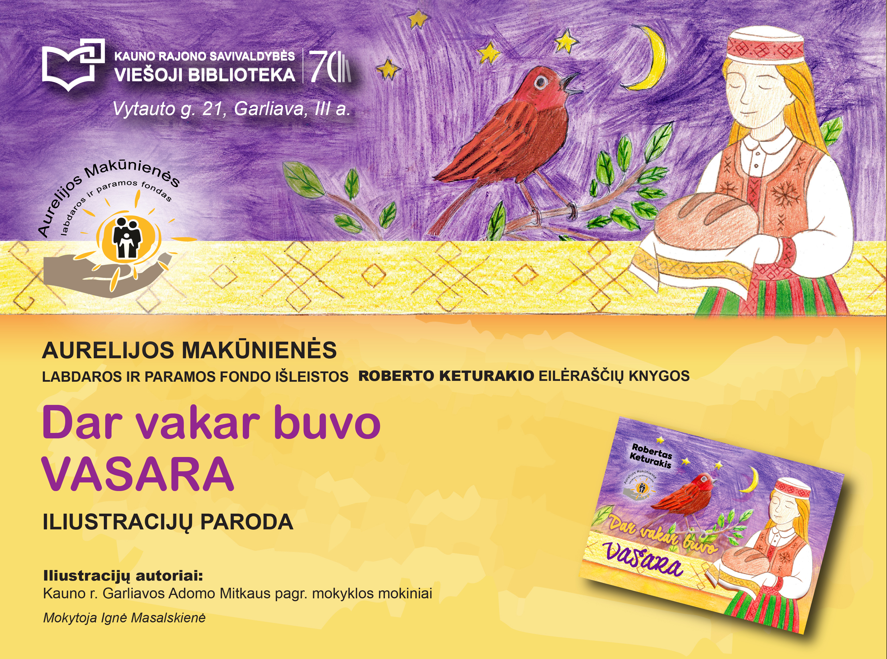 Knygos „Dar vakar buvo vasara“ iliustracijų paroda visą rugsėjo mėnesį eksponuojama Kauno rajono savivaldybės viešosios bibliotekos III aukšte, Parodų salėje. Maloniai kviečiame apsilankyti!