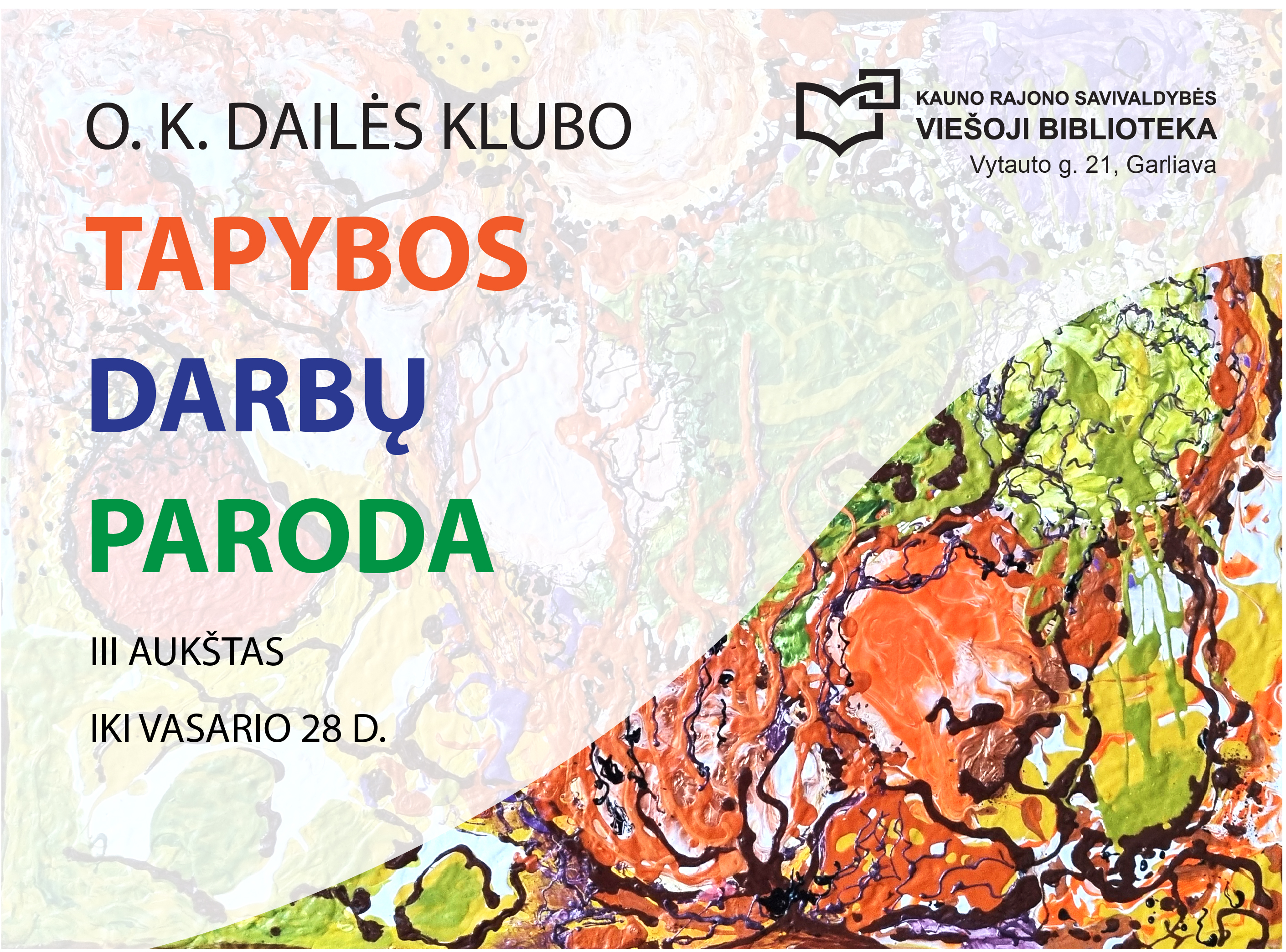 Kauno rajono savivaldybės viešosios bibliotekos III aukšte, Konferencijų salėje, kviečiame apžiūrėti O. K. dailės klubo narių tapybos darbų parodą.