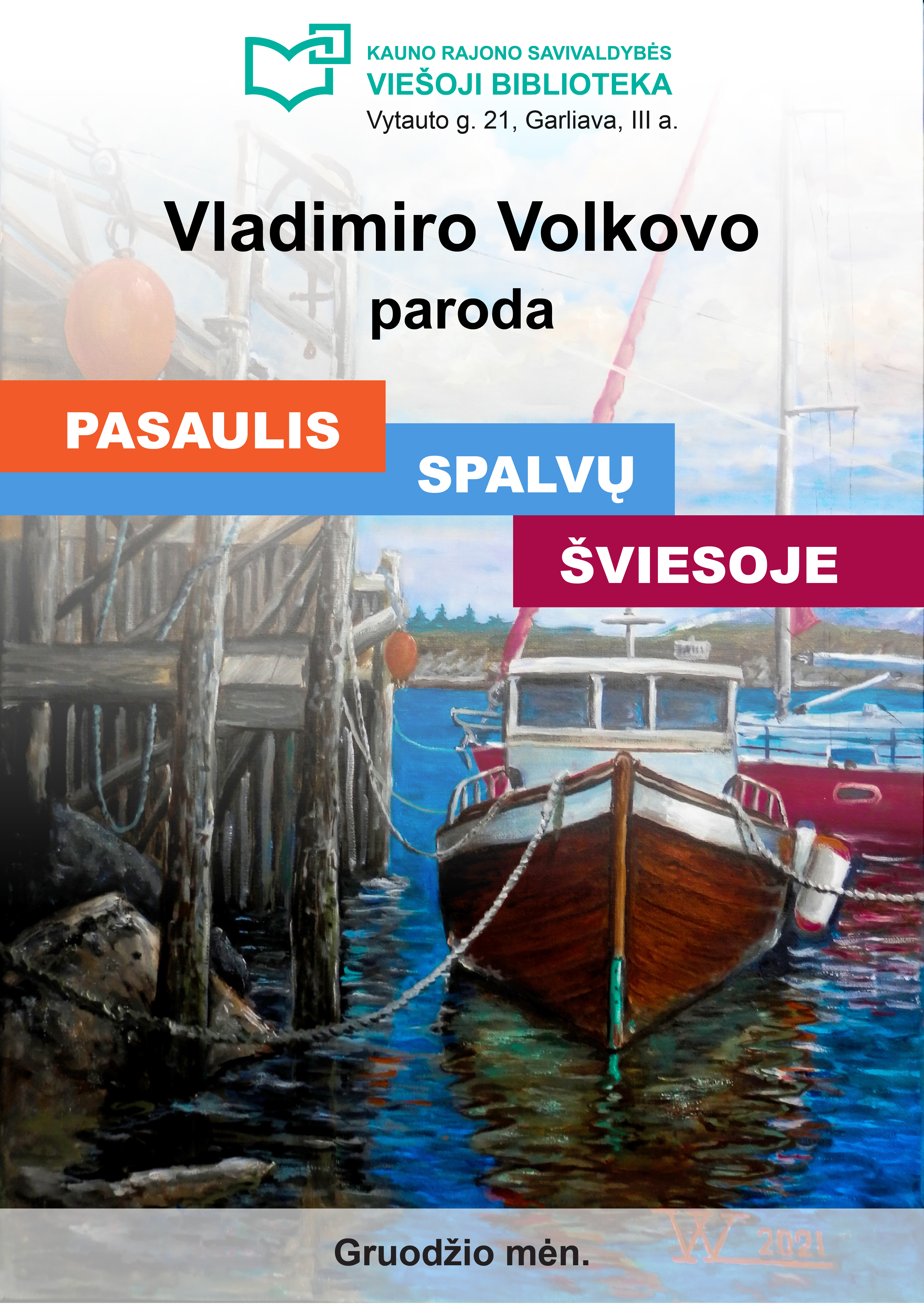 Kauno rajono savivaldybės viešojoje bibliotekoje, III aukšte (Konferencijų ir Parodų salėse) eksponuojama Vladimiro Volkovo tapybos darbų paroda „Pasaulis spalvų šviesoje“. Ryškiaspalvius ir kasdienybės vitališkumu žvilgančius sodrių potėpių darbus tikrai verta pamatyti!