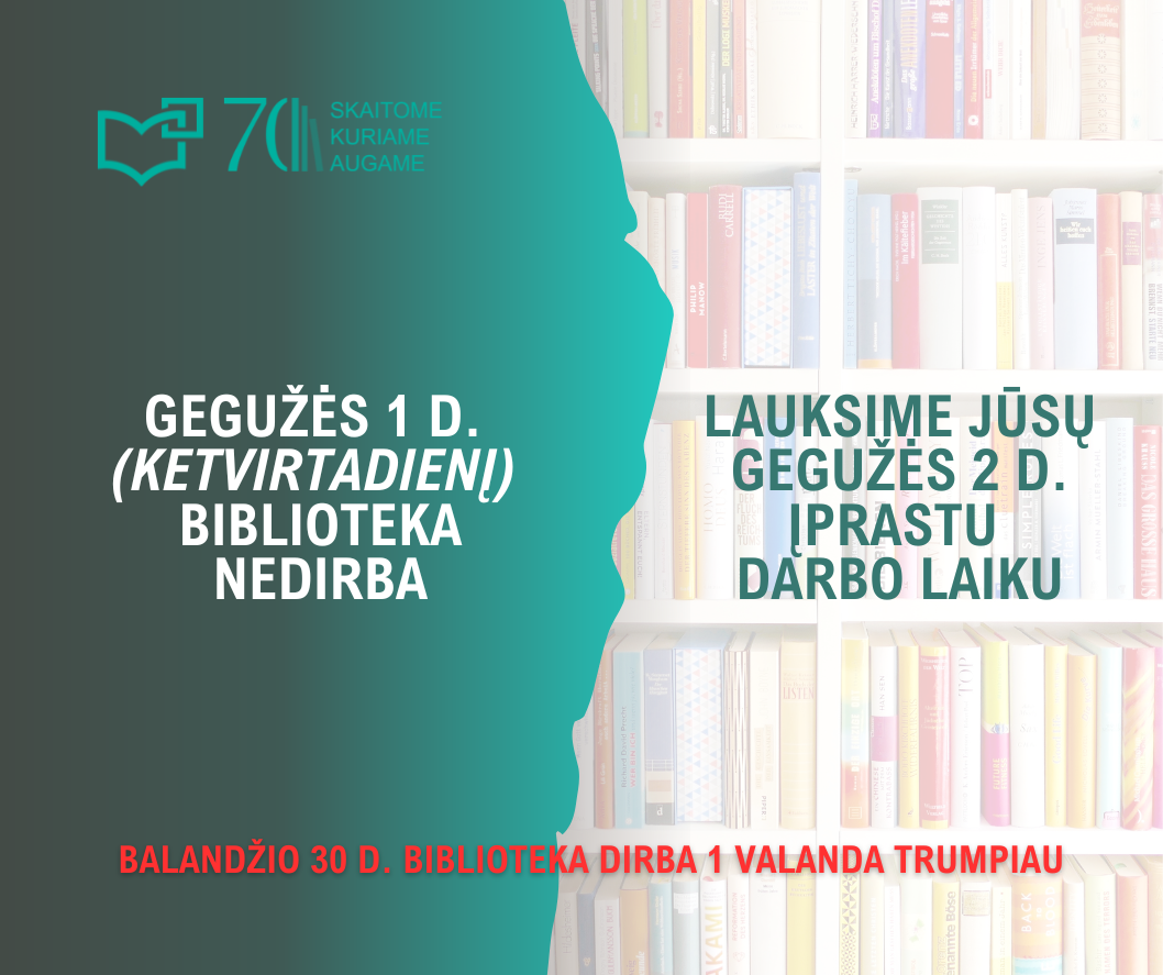 Gegužės 1 d. (ketvirtadienį) biblioteka nedirba.