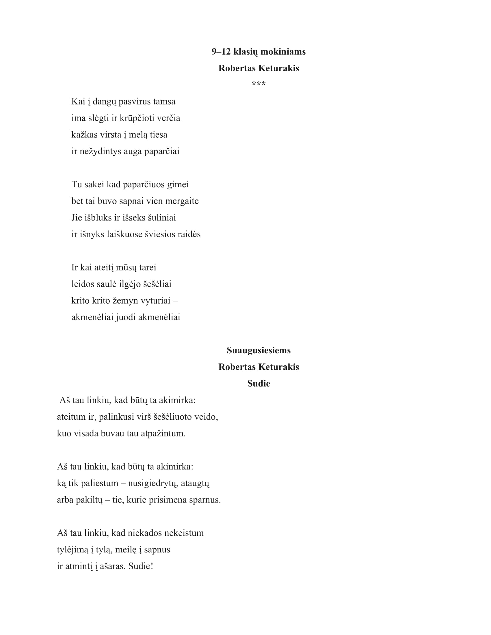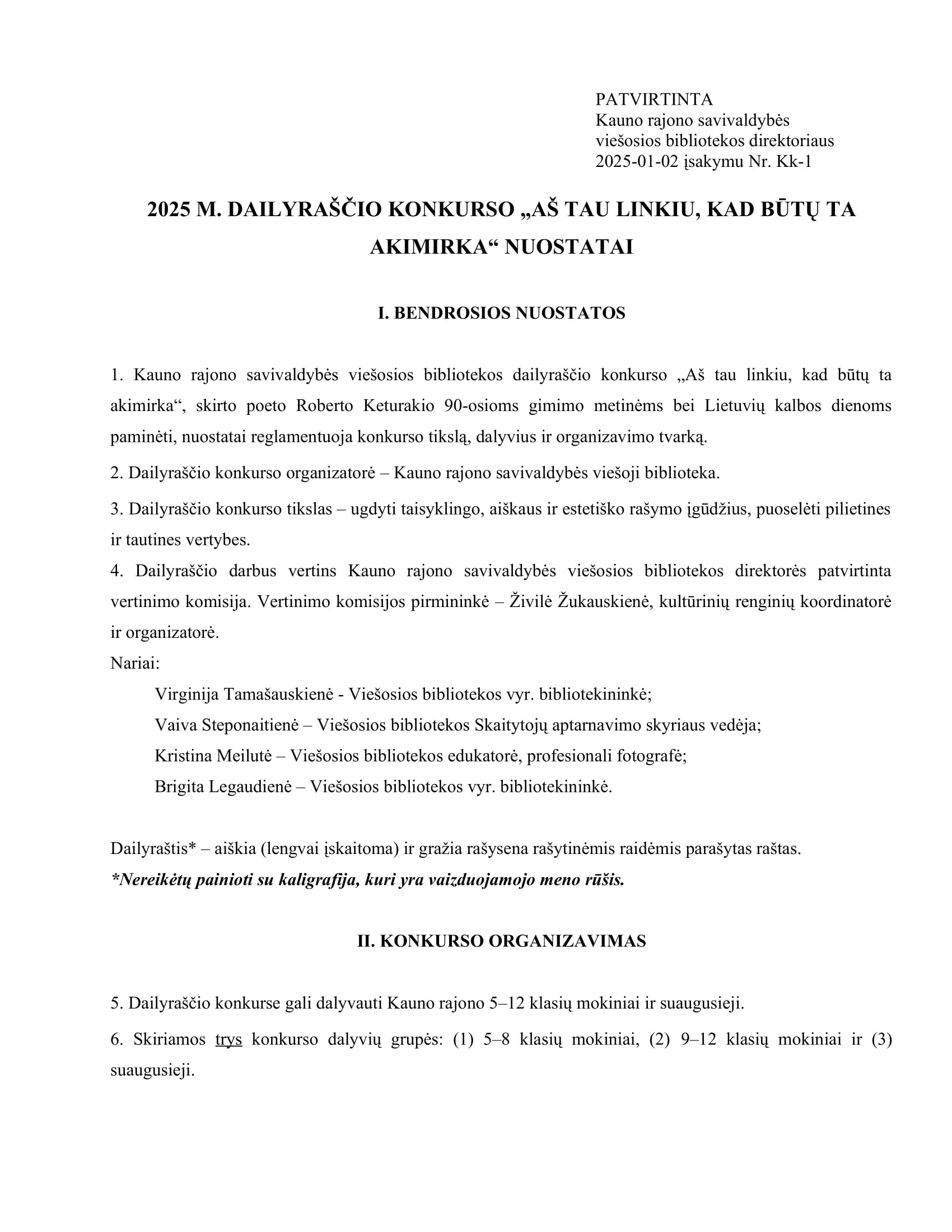 2025 m. sausio 13–vasario 28 d. vyksta Kauno rajono savivaldybės viešosios bibliotekos organizuojamas dailyraščio konkursas „Aš tau linkiu, kad būtų ta akimirka“, skirtas poeto Roberto Keturakio 90-osioms gimimo metinėms ir Lietuvių kalbos dienoms paminėti.