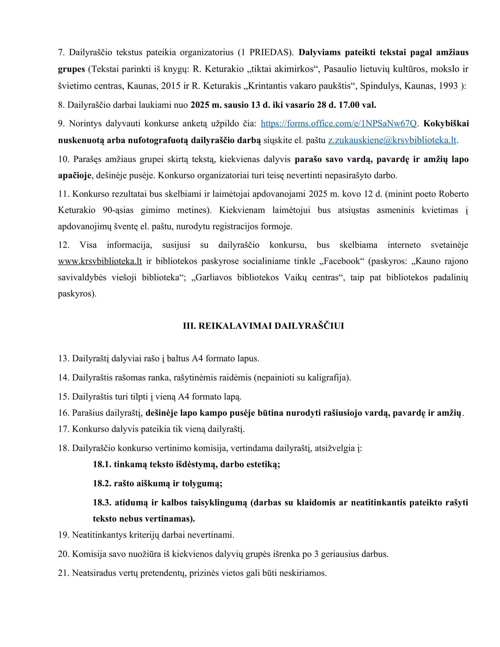 Kokybiškai nuskenuotą arba nufotografuotą dailyraščio darbą siųskite el. paštu [email protected].
