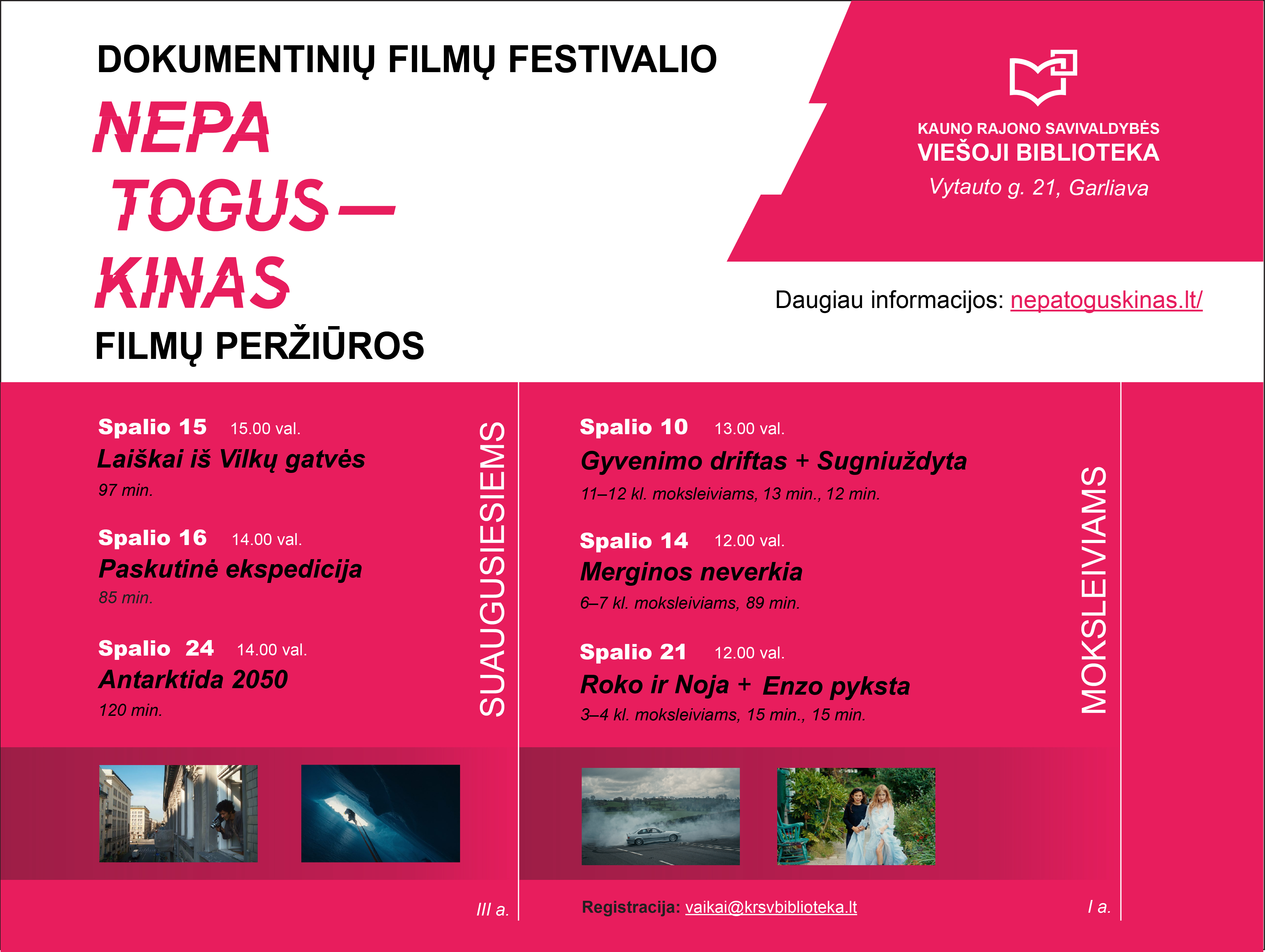 ▬ Spalio 24 d., penktadienį, 14 val. „Antarktida 2050“ (rež. Kristof Van den Bergh, Eric Goens, 2 val.) https://nepatoguskinas.lt/2025/filmas/antarktida-2050/
