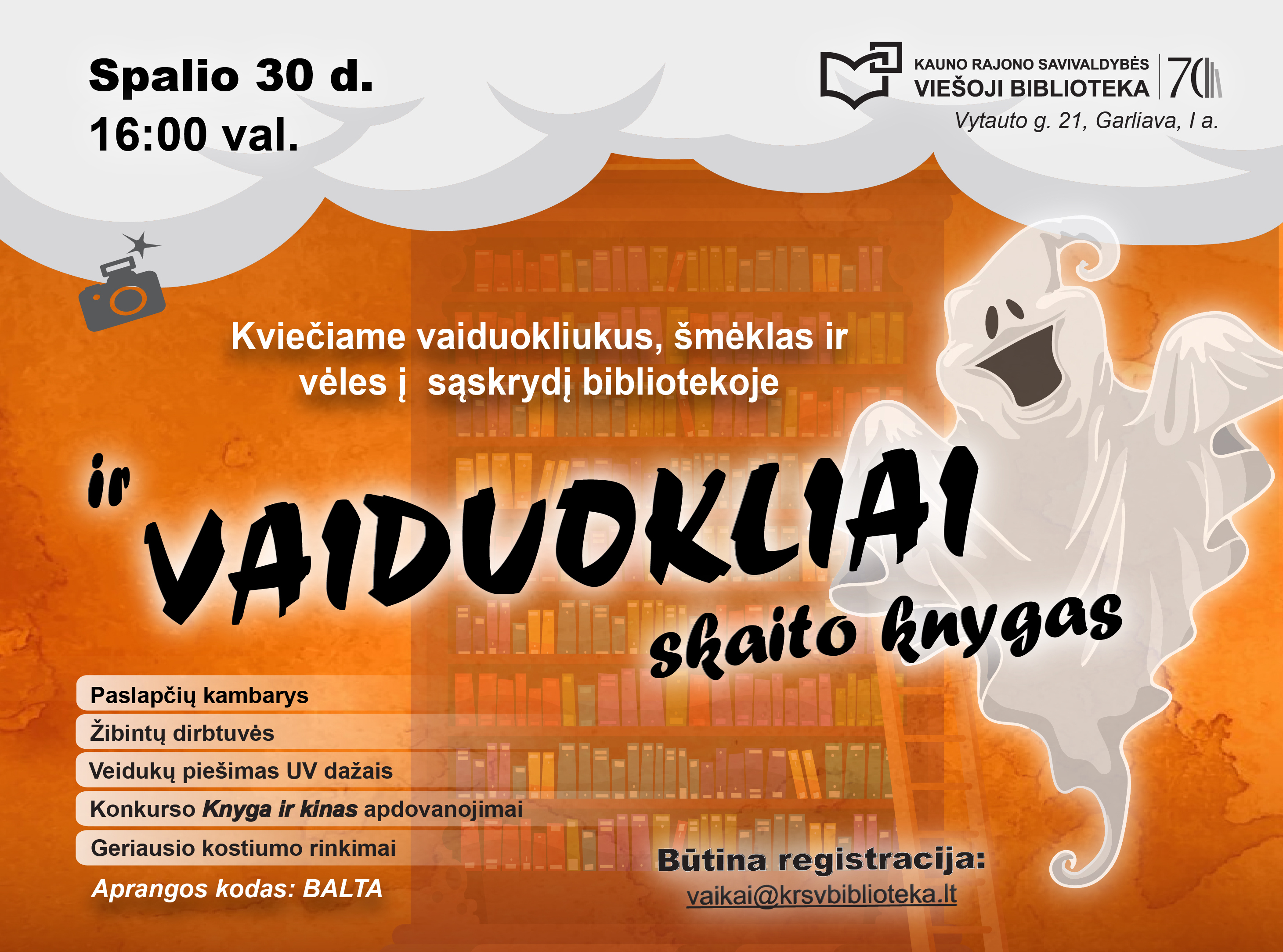 DĖMESIO! Artėja pats baisiausias (ir linksmiausias!) metų vakarėlis! Ar drįstate užsukti į biblioteką, kai sutemos jau slepiasi tarp knygų lentynų?