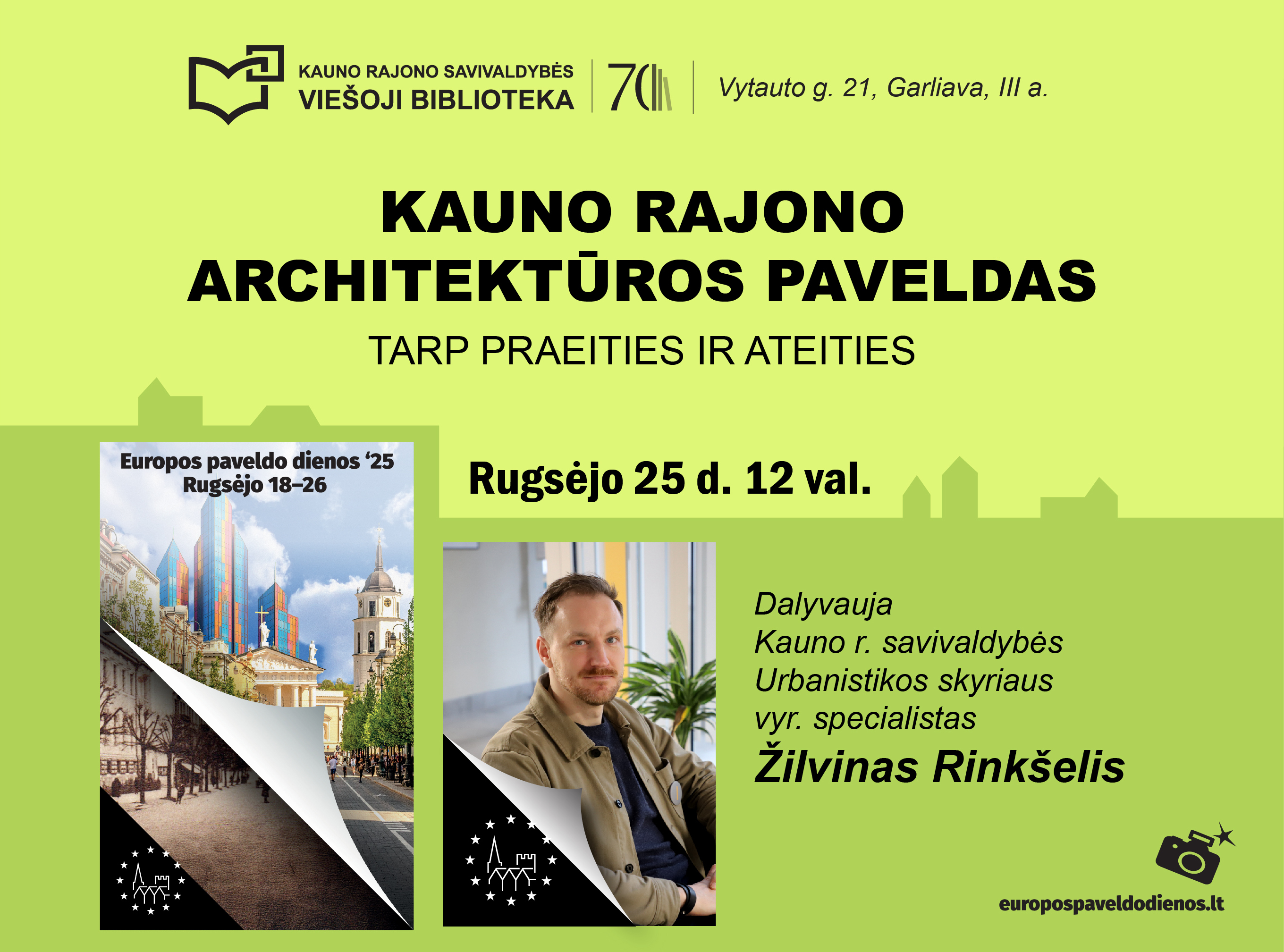 Daug įdomybių apie Kauno rajono architektūros paveldą sužinosite atvykę į biblioteką pasiklausyti Kauno rajono savivaldybės paveldosaugininko Žilvino Rinkšelio pranešimo.