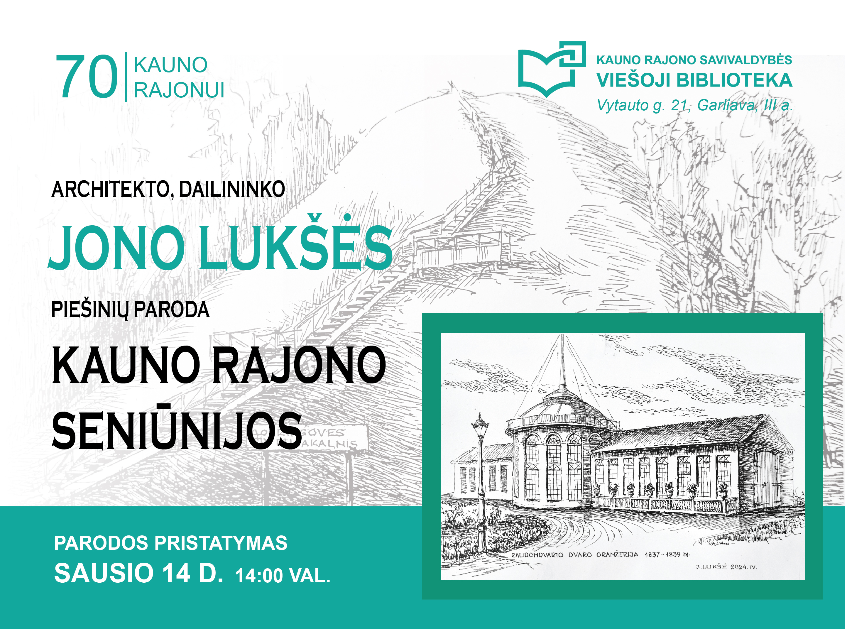 Kauno rajono savivaldybės viešoji biblioteka kviečia Jus pasigrožėti architekto, dailininko ir kultūros paveldo vertybių specialisto Jono Lukšės darbų paroda „Kauno rajono seniūnijos“. Paroda dedikuota Kauno rajono 70-mečiui paminėti.