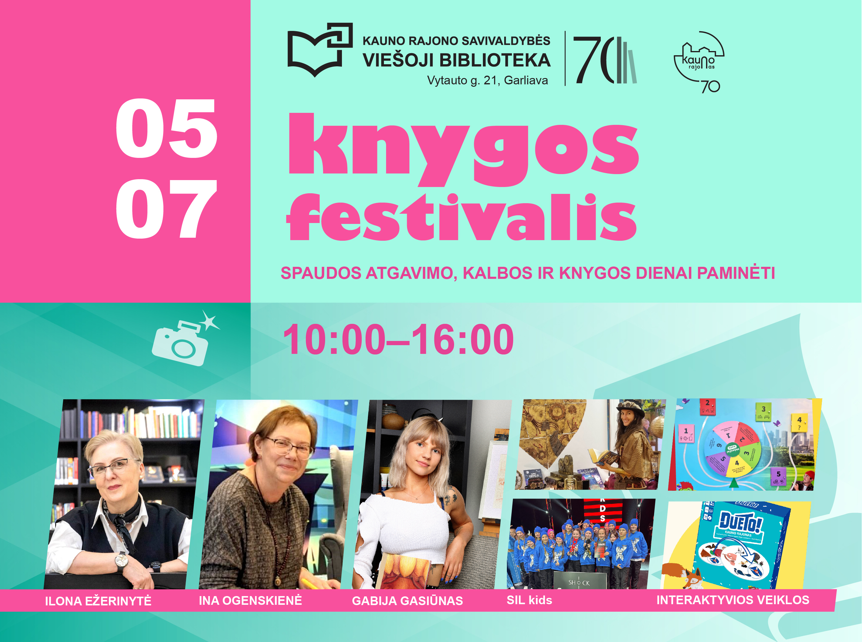 KNYGOS FESTIVALIS 2025 – Kauno rajono savivaldybės viešosios bibliotekos 70-mečio ir Spaudos atgavimo, kalbos ir knygos dienos proga.