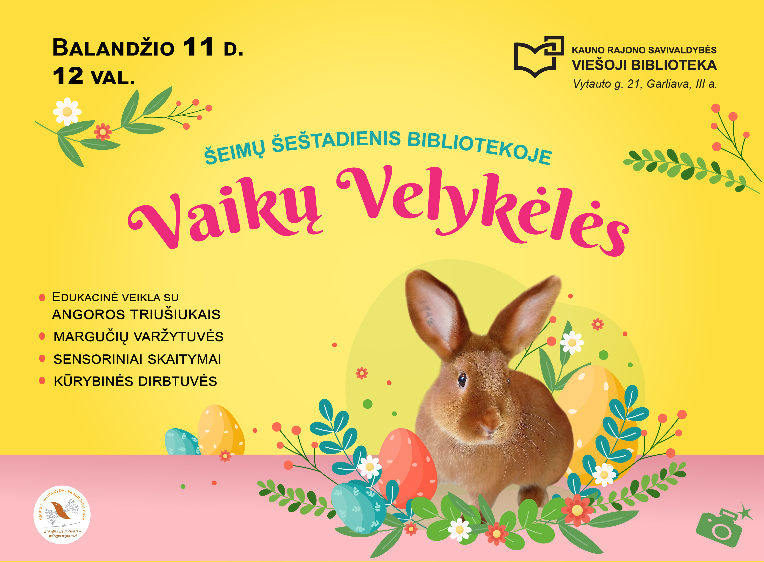Kviečiame šeimas į šiltą ir žaismingą Šeimų šeštadienį bibliotekoje – Vaikų Velykėles! Balandžio 11-ąją biblioteka virs pavasario stebuklų kampeliu.