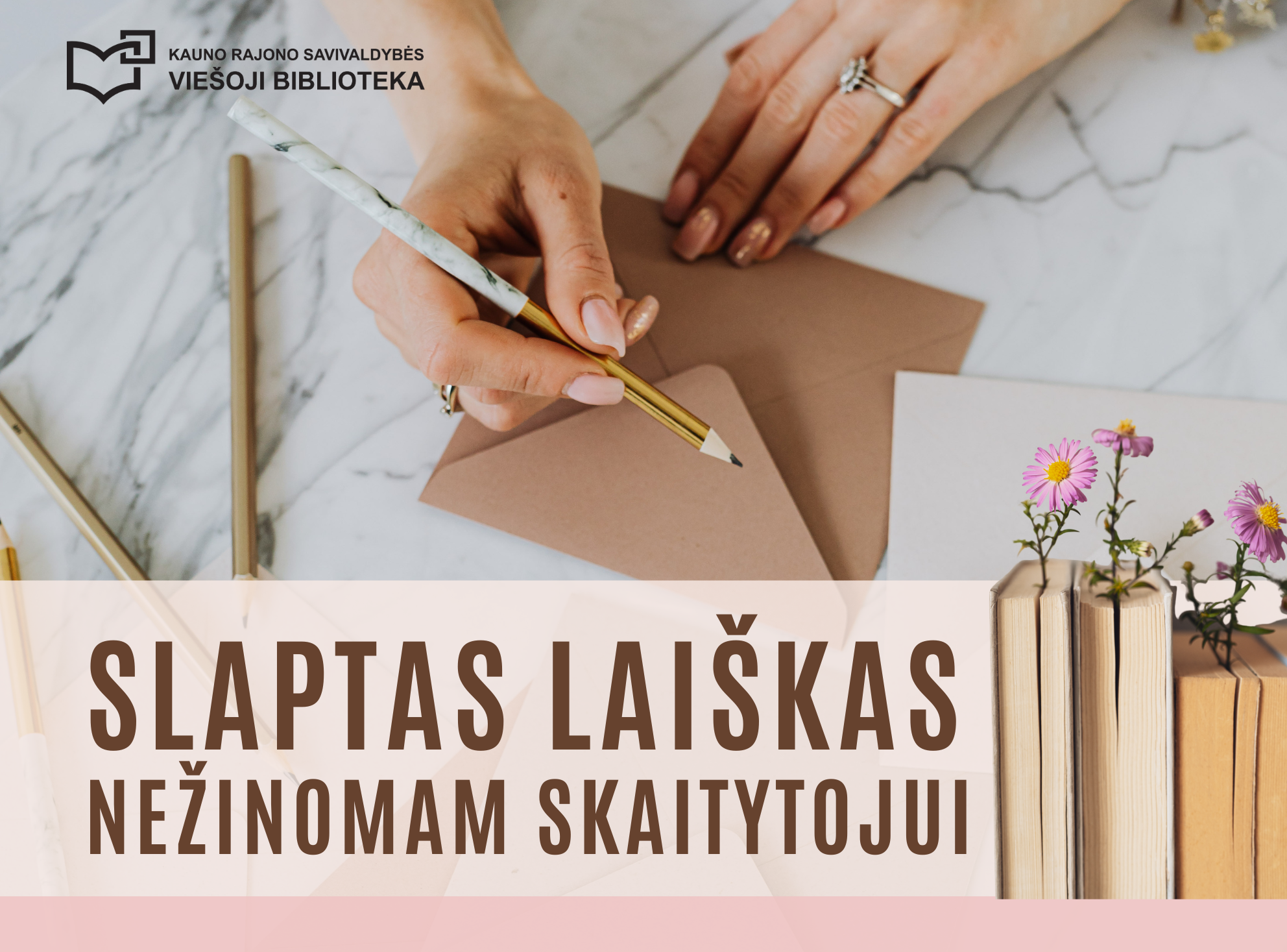 Ar kada pagalvojote, kad knyga gali tapti tiltu tarp dviejų nepažįstamų žmonių? Jau nuo šiandien kviečiame atsiverti nuotykiui! „Slaptas laiškas nežinomam skaitytojui“ – tai daugiau nei akcija. Tai nauja skaitymo patirtis – tylus, bet gyvas dialogas, gimstantis tarp puslapių. Grąžindami perskaitytą knygą, palikite joje mažą dalelę savęs – trumpą laišką tam, kuris ją atsivers po Jūsų. Gal tai bus mintis, kuri Jus sustabdė. Citata, prie kurios norėjosi sugrįžti. Klausimas, į kurį patys dar ieškote atsakymo. O gal tiesiog šiltas palinkėjimas kitam šių puslapių skaitytojui. Knygos keliauja iš rankų į rankas. Leiskime joms nešti ir mūsų balsus.