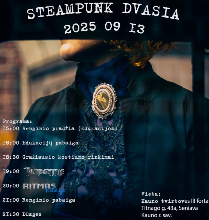 Rugsėjo 13 d. rudenėjančiame Kauno tvirtovės parke, III forte (Titnago g. 43A, Seniava), susibursime stimpanko festivalyje STEAMPUNK DVASIA.
