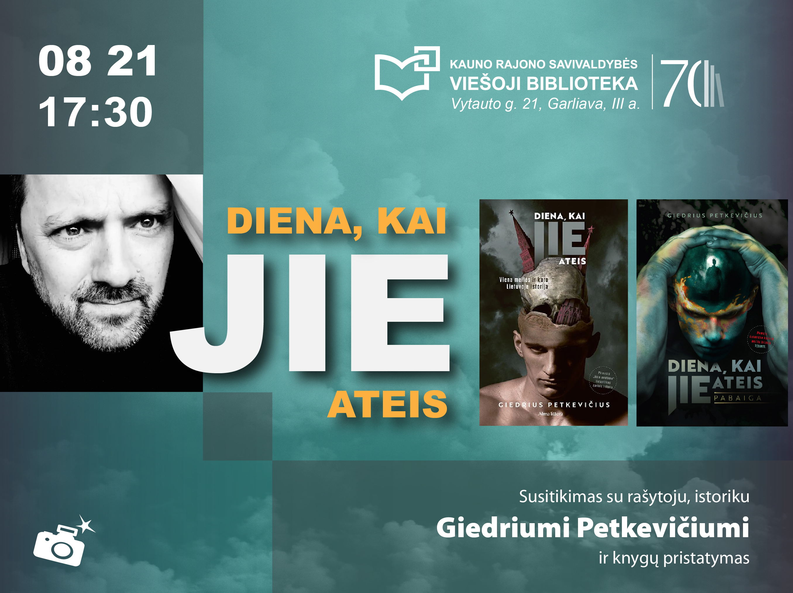 Kauno rajono savivaldybės viešojoje bibliotekoje rašytojas, istorikas Giedrius Petkevičius pristatys savo knygas „Diena, kai JIE ateis" ir „Diena, kai JIE ateis. Pabaiga“.