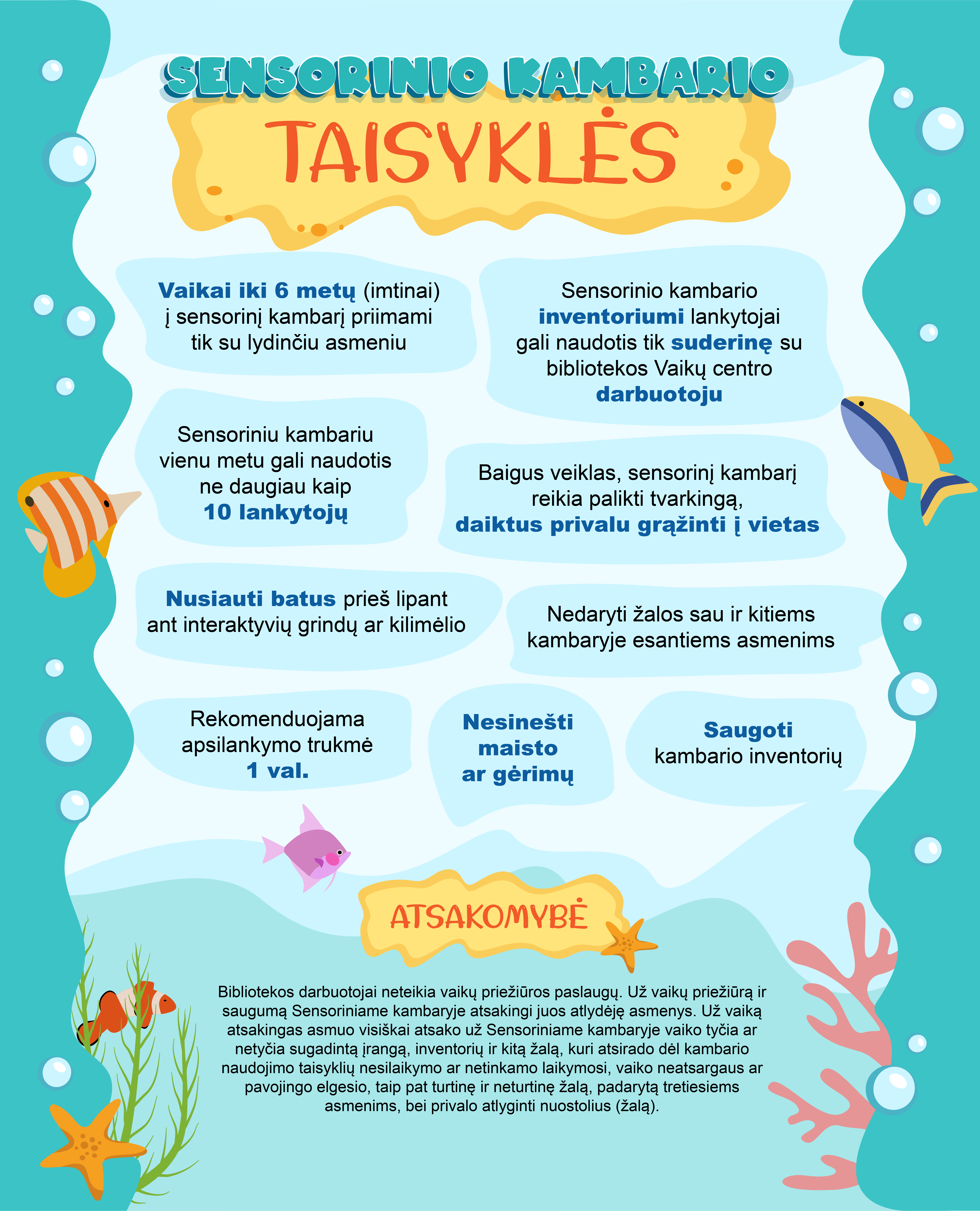 Kauno rajono savivaldybės viešosios bibliotekos I aukšte, Vaikų centre, veikiantis Sensorinis kambarys jau atviras lankytojams. Kviečiame susipažinti su taisyklėmis ir laukiame Jūsų bibliotekoje!