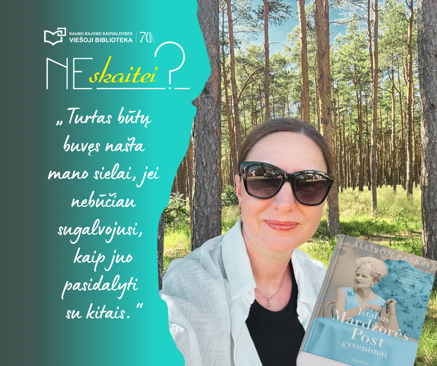 Virtualaus skaitytojų klubo „[ne]skaitei?“ sekėjams Raimonda pristato knygą, kuri ir nustebino, ir pakerėjo. Be konkurencijos geriausiu atostogų skaitiniu Raimondai tapo Allison Pataki romanas „Įstabūs Mardžorės Post gyvenimai“. A. Pataki – amerikiečių rašytoja ir žurnalistė, kurios romanai išversti į daugiau nei dvidešimt kalbų ir ne kartą atsidūrė „New York Times“ bestselerių sąraše. Ji gimė 1984 m. Niujorke, studijavo anglų kalbą ir literatūrą Jeilio universitete, o žurnalistinį darbą netrukus iškeitė į kūrybą. Pirmasis romanas „Išdaviko žmona“ pasirodė 2012-aisiais ir atvėrė kelią tolesniems sėkmingiems kūriniams, tarp jų – lietuvių skaitytojų jau pamėgtoms istorijoms apie imperatorienę Sisi. Autorė pabrėžia, kad knygos jai visada buvo svarbiausias įkvėpimo šaltinis ir būdas į pasaulį pažvelgti naujomis akimis.