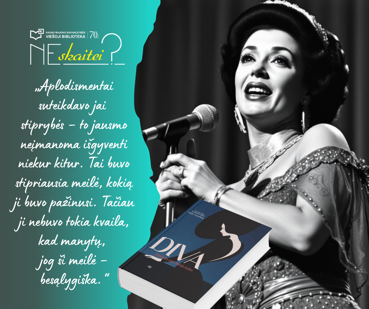 Į virtualų skaitytojų klubą „[ne]skaitei?“ šią savaitę užsukusi Virginija rekomenduoja anglų scenaristės, televizijos prodiuserės ir romanistės Daisy Goodwin (g. 1961) pasakojamą istoriją apie visame pasaulyje išgarsėjusią moterį ir sudėtingą jos likimą. Knygoje „Diva“ atskleidžiami nepaprastu talentu, nenumaldoma energija ir natūralia elegancija apdovanotos žymiosios dainininkės Marijos Kalas gyvenimo užkulisiai ir jausmų verpetai. Jaudinanti istorija, kaip, netekusi mylimo vyro, moteris atranda savo balsą iš naujo.