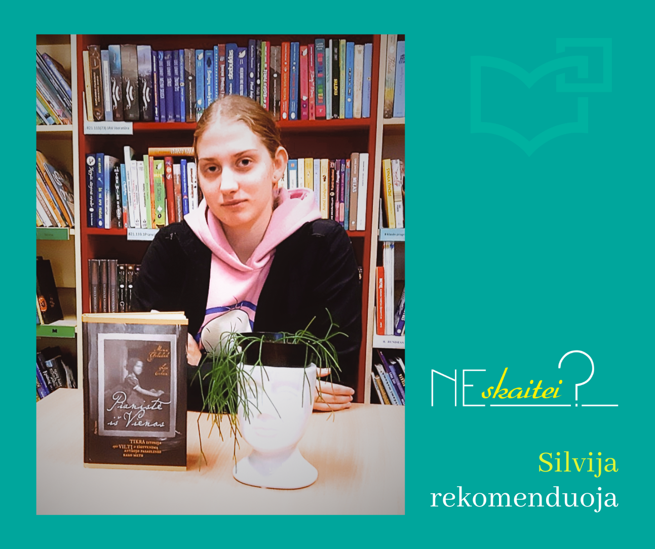 Esu Linksmakalnio bibliotekos skaitytoja Silvija, mokausi Generolo Povilo Plechavičiaus kadetų licėjuje. Mėgstu skaityti knygas, o viena iš labiausiai man patikusių knygų yra Monos Golabek ir Lee Cohen „Pianistė iš Vienos“. Tai emociškai paveiki, tikrais Antrojo pasaulinio karo išgyvenimais paremta mergaitės istorija. Knygoje liudijama stiprios merginos drąsa nepasiduoti negandoms. Be to, čia itin subtiliai atskleidžiama, kaip muzika padėjo ištverti sunkius gyvenimo išbandymus. Rekomenduoju šitą knygą perskaityti mėgstantiems jautrias ir gražias istorijas, ypač kiekvienam, kuris neabejingas muzikai.