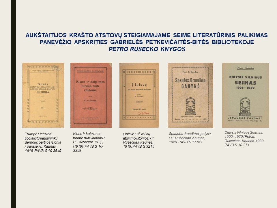 Pristatydama šią parodą, Kauno rajono savivaldybės viešoji biblioteka nori paminėti LR Seimo paskelbtus Aukštaitijos metus ir Lietuvos Steigiamojo Seimo susirinkimo dieną, minimą gegužės 15-ąją.