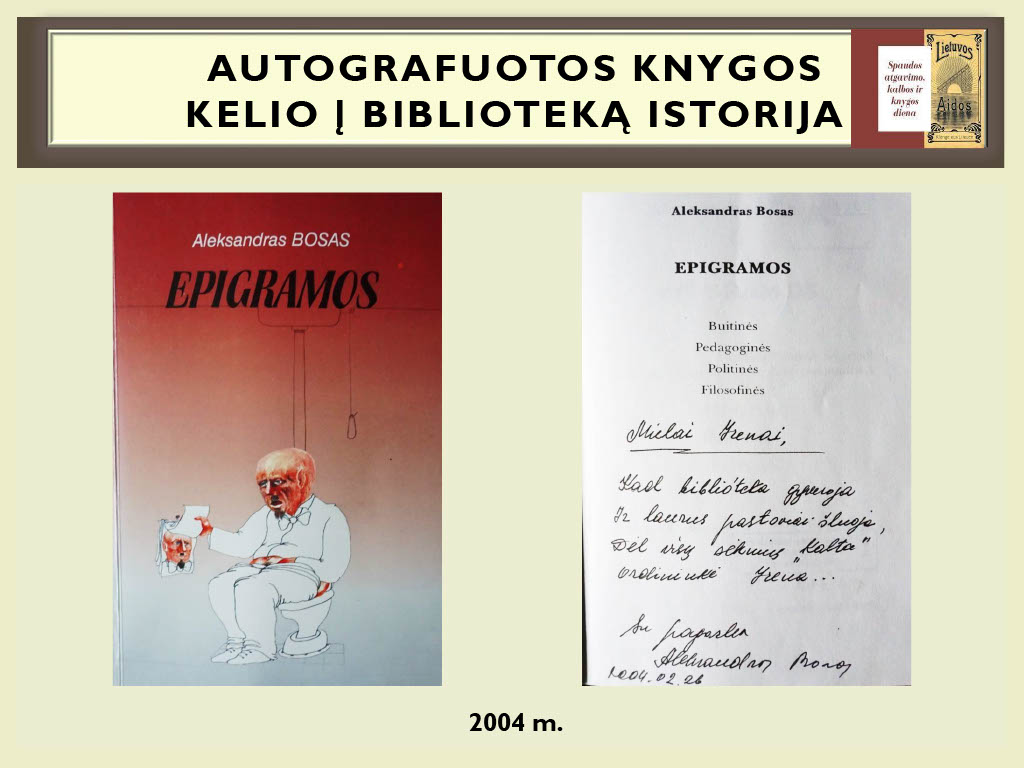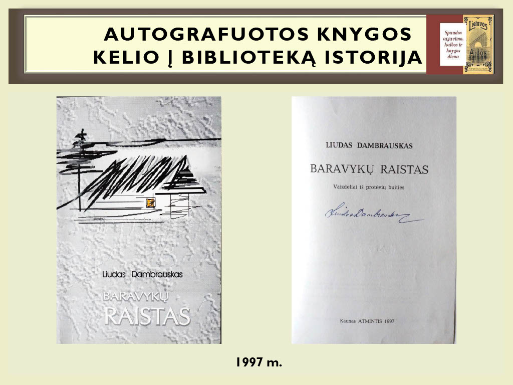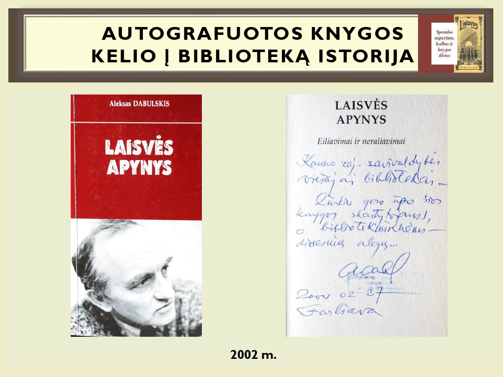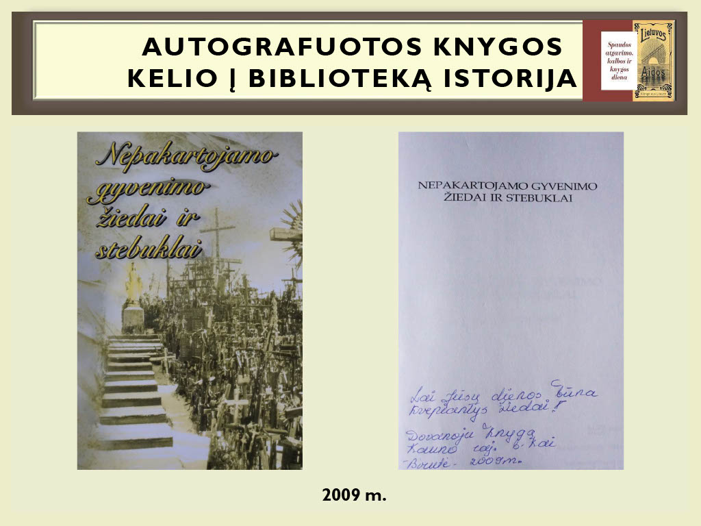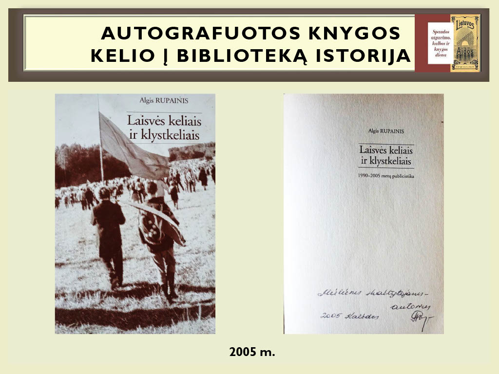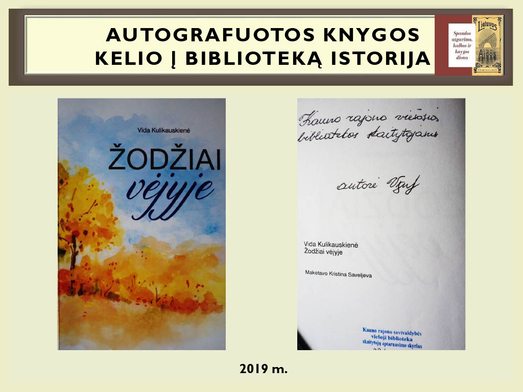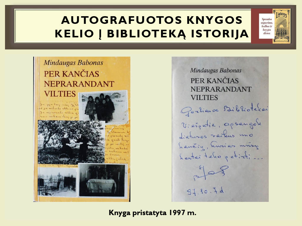 Autografuotos knygos kelio į biblioteka istorija/Spaudos atgavimo, kalbos ir knygos dienai