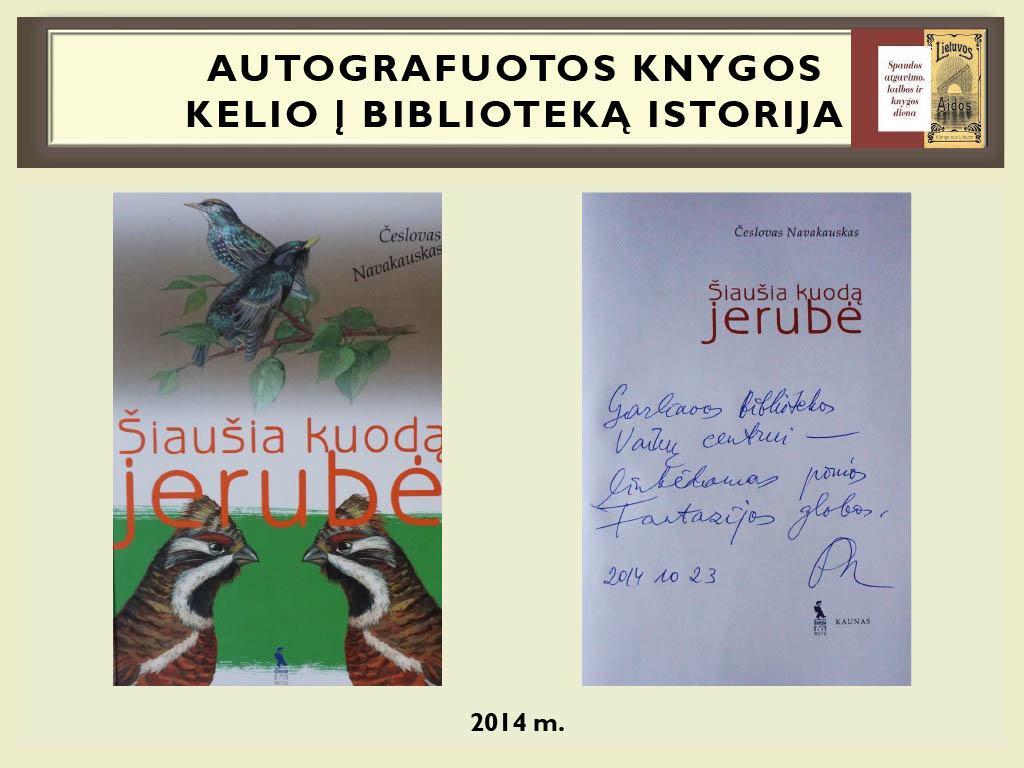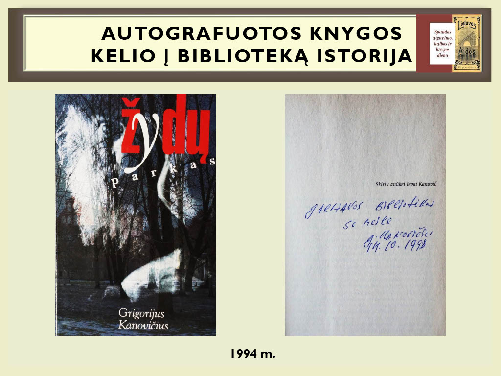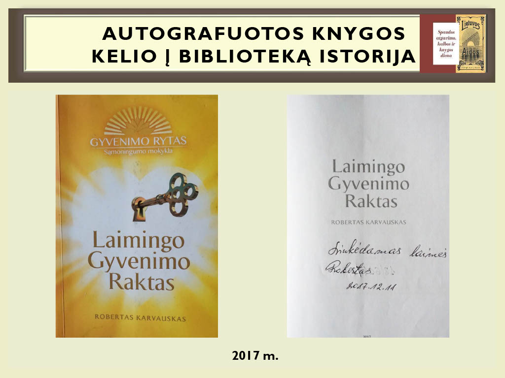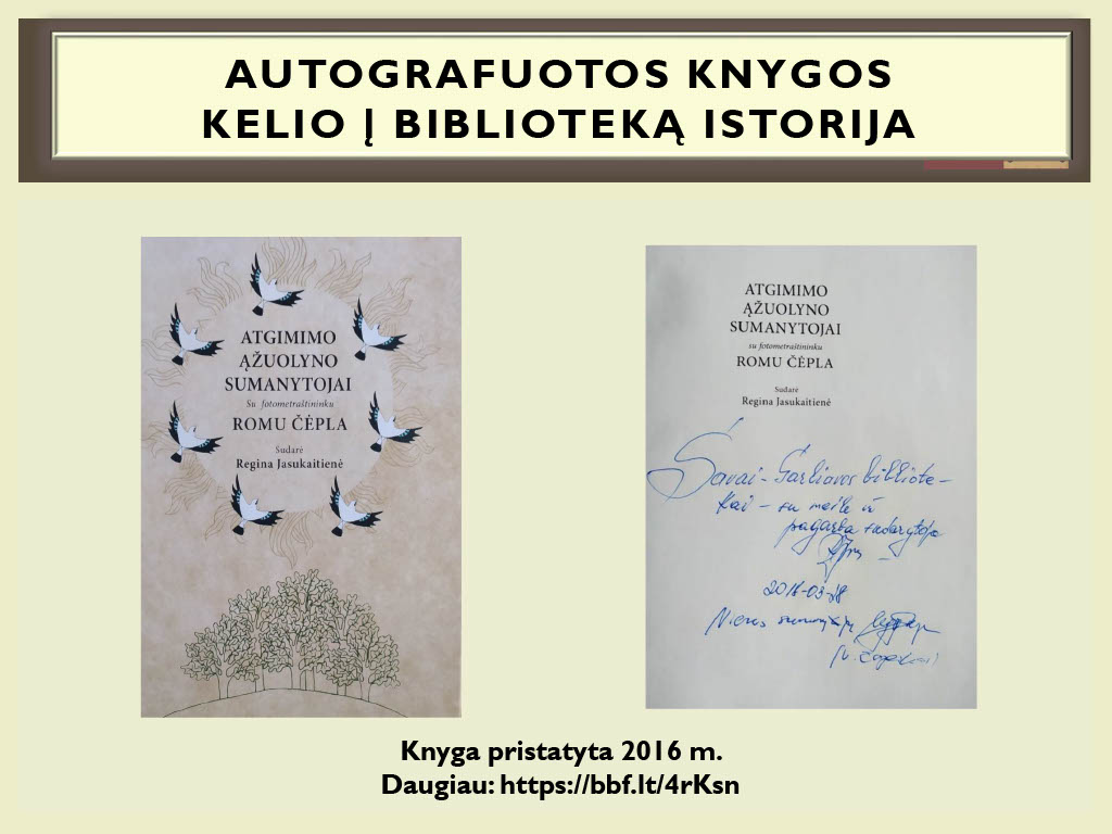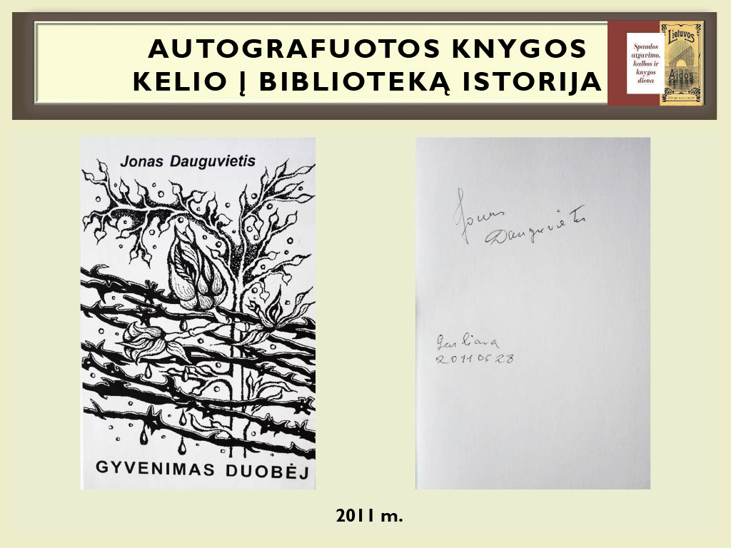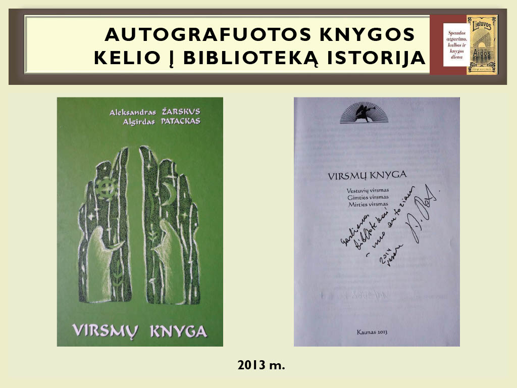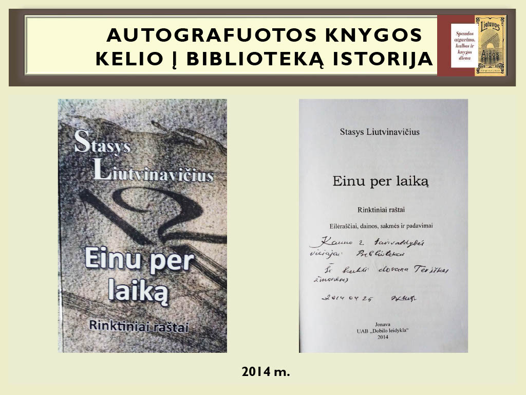 Autografuotos knygos kelio į biblioteka istorija/Spaudos atgavimo, kalbos ir knygos dienai