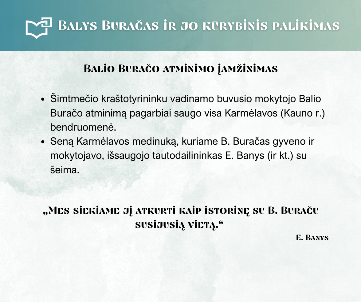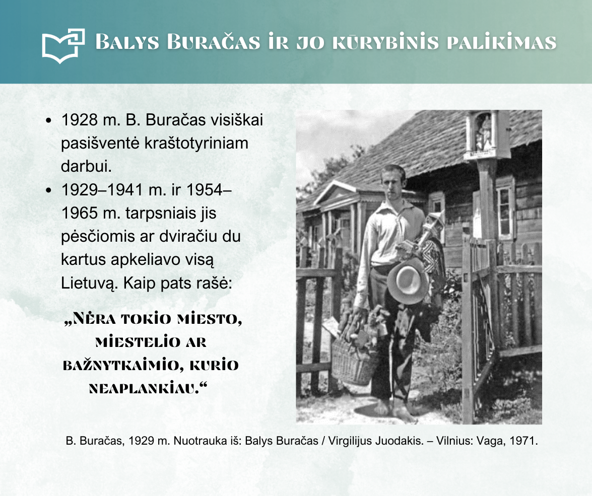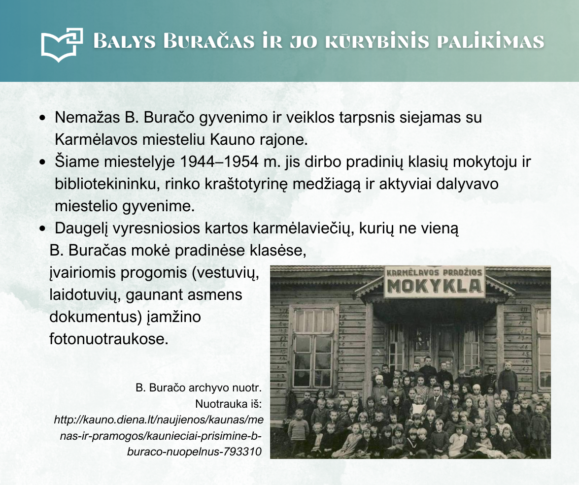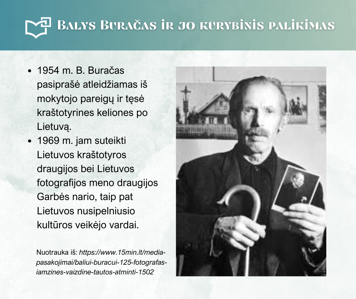 Kviečiame apžiūrėti virtualią parodą, skirtą iškiliam Lietuvos pedagogui, fotografui, etnografui, kraštotyrininkui, spaudos bendradarbiui Baliui Buračui (1897–1972). 2025-ųjų sausio 18-ąją minime Balio Buračo 128-ąsias gimimo metines.