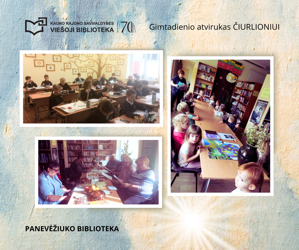 2025 m. rugsėjo 22-ąją buvo minimos Mikalojaus Konstantino Čiurlionio 150-osios gimimo metinės, tad visą rugsėjo mėnesį Kauno rajono savivaldybės viešojoje bibliotekoje ir trisdešimtyje jos padalinių Kauno rajone vyko gausybė veiklų, kurių tikslas – padėti pažinti ir aktualizuoti lietuvių kilmės genijaus kūrybą. Biblioteka su padaliniais įgyvendino akciją „Gimtadienio atvirukas Čiurlioniui“. Edukacijose bei kūrybinės dirbtuvėse, atveriančiose M. K. Čiurlionio gyvenimo ir kūrybos lobynus, dalyvavo arti 800 įvairaus amžiaus bibliotekos lankytojų. Akcijos veiklos ne tik atskleidė esminius didžiojo menininko kūrybos motyvus, bet ir skatino individualų kūrybiškumą. Dalijamės akcijos akimirkomis.